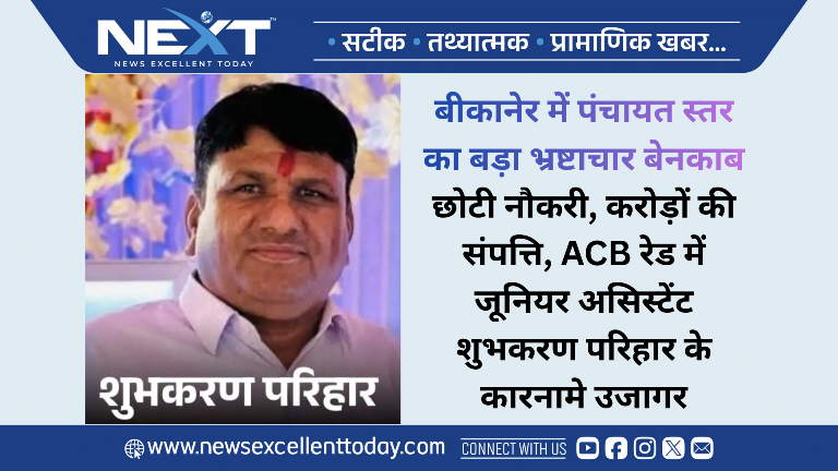 बीकानेर में पंचायत स्तर का बड़ा भ्रष्टाचार बेनकाब: छोटी नौकरी, करोड़ों की संपत्ति, ACB रेड में जूनियर असिस्टेंट शुभकरण परिहार के कारनामे उजागर