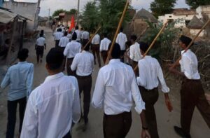 बापेउ में पहली बार संघ का संचलन, गांव की गलियों में गूंजी घोष की धुनें