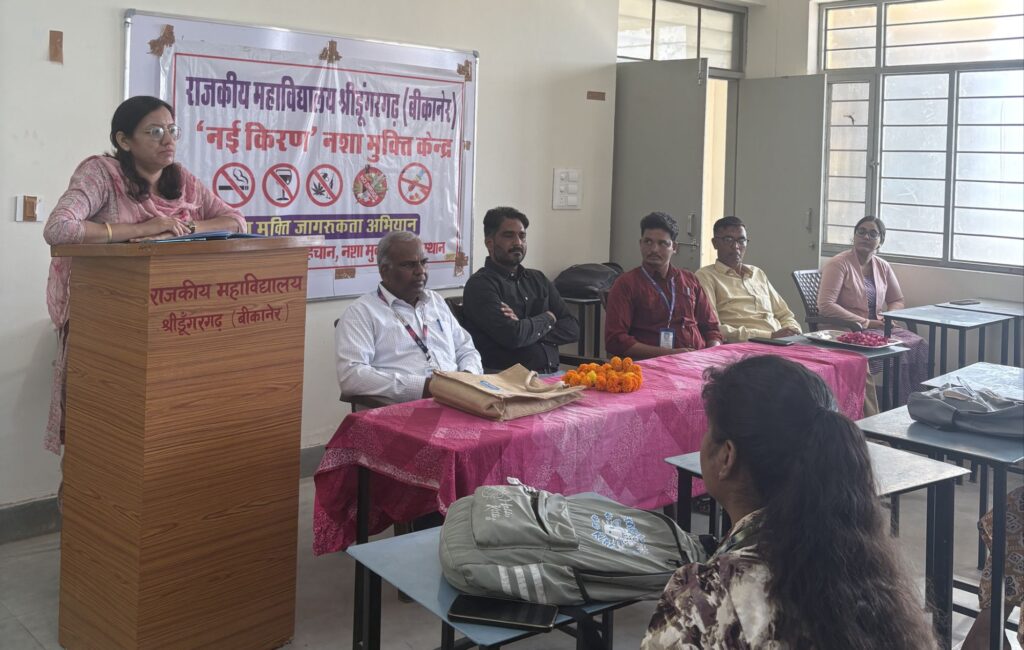 NEXT 7 नवम्बर, 2025 श्रीडूंगरगढ़। राजकीय महाविद्यालय श्रीडूंगरगढ़ में नई किरण नशा मुक्ति अभियान, राज्य गहिला नीति-2021 और सेमिनार एवं जागरूकता कार्यक्रम के तहत व्याख्यानमाला का आयोजन हुआ।
