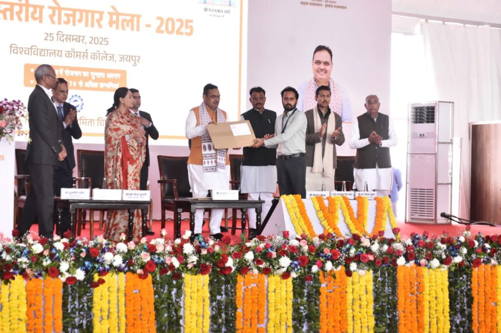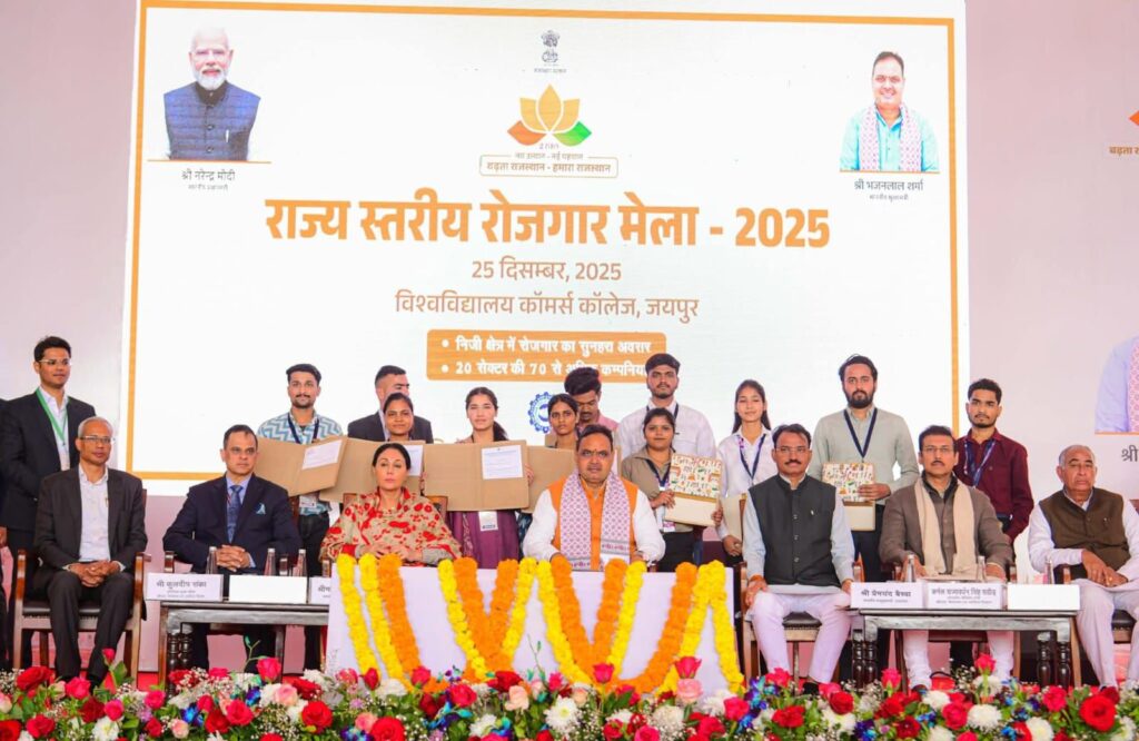 NEXT 25 दिसम्बर, 2025 श्रीडूंगरगढ़। राज्य सरकार के दो वर्ष पूरे होने और सुशासन दिवस के मौके पर गुरुवार को कॉमर्स कॉलेज, जयपुर में राज्य स्तरीय राज रोजगार मेले का आयोजन किया गया। मेले में प्रदेशभर से बड़ी संख्या में युवाओं और युवतियों ने भाग लिया। सुबह से ही कॉलेज परिसर में युवाओं की लंबी कतारें देखने को मिलीं।