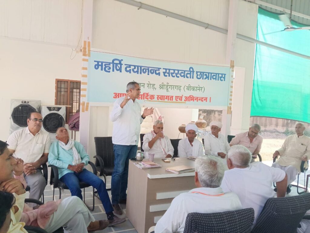 NEXT 24 अक्टूबर, 2205 श्रीडूंगरगढ़। महर्षि दयानन्द सरस्वती छात्रावास विकास समिति की बैठक छात्रावास परिसर में अध्यक्ष एडवोकेट श्यामसुंदर आर्य की अध्यक्षता में हुई। बैठक में शिक्षा व्यवस्था, समाजहितकारी कार्यों और सदस्यता विस्तार पर विस्तार से चर्चा की गई।