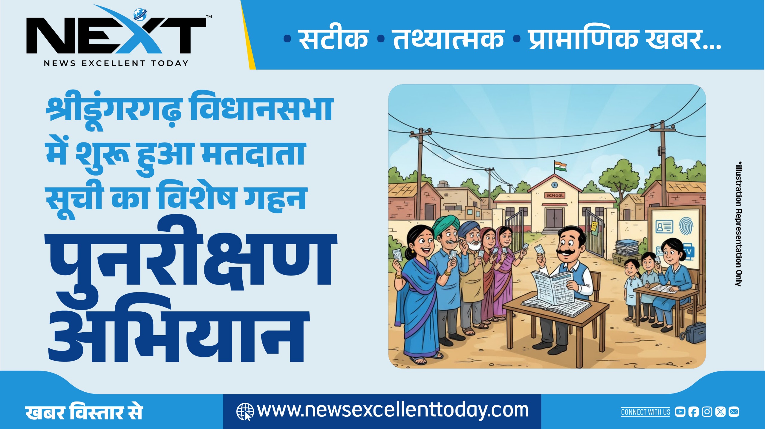 कोई योग्य मतदाता छूटे नहीं, कोई अयोग्य शामिल न हो– निर्वाचन आयोग का लक्ष्य NEXT 28 अक्टूबर, 2025 श्रीडूंगरगढ़। भारत निर्वाचन आयोग ने मतदाता ...