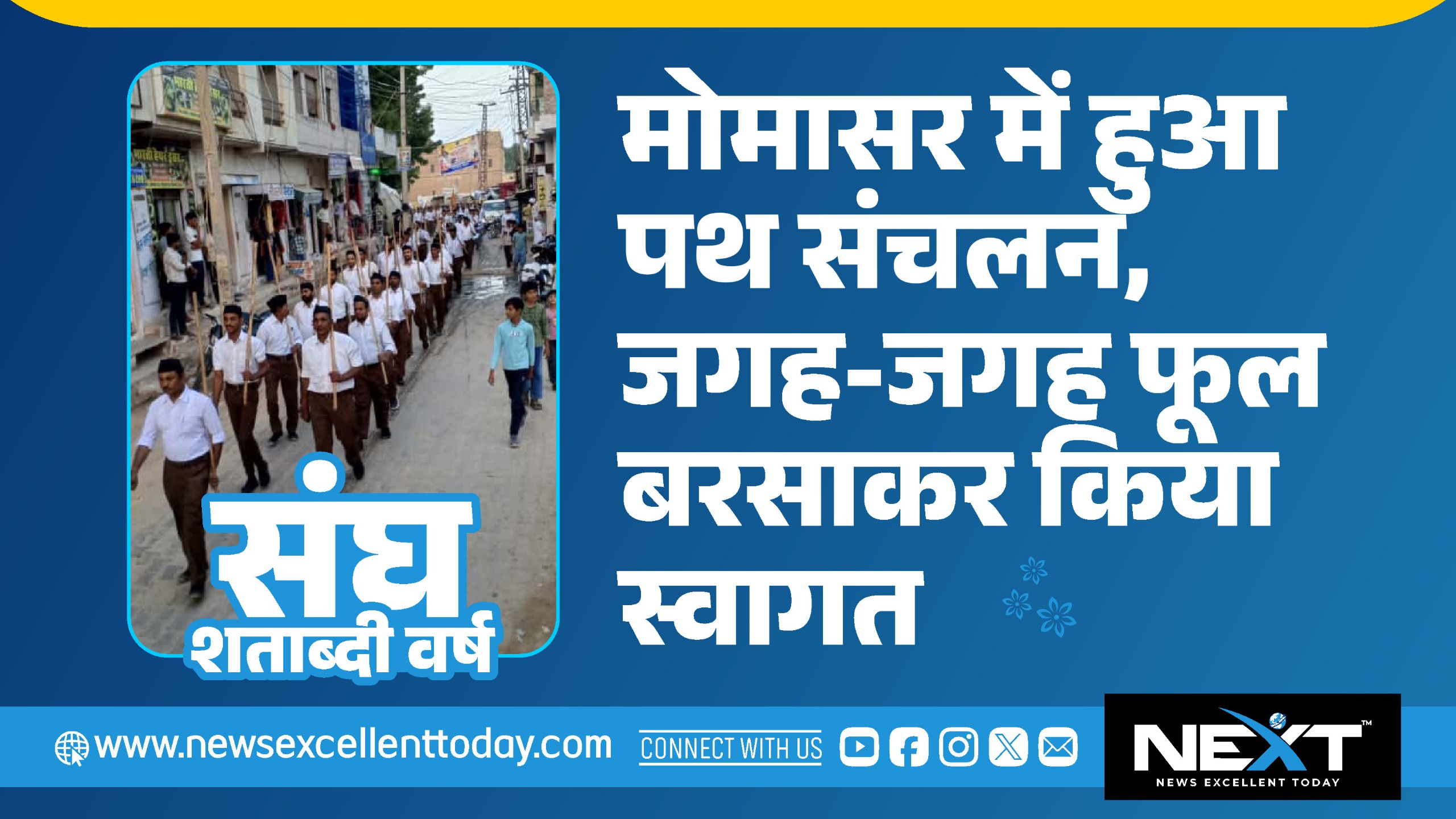 संघ का शताब्दी वर्ष : मोमासर में हुआ पथ संचलन, जगह-जगह फूल बरसाकर किया स्वागत