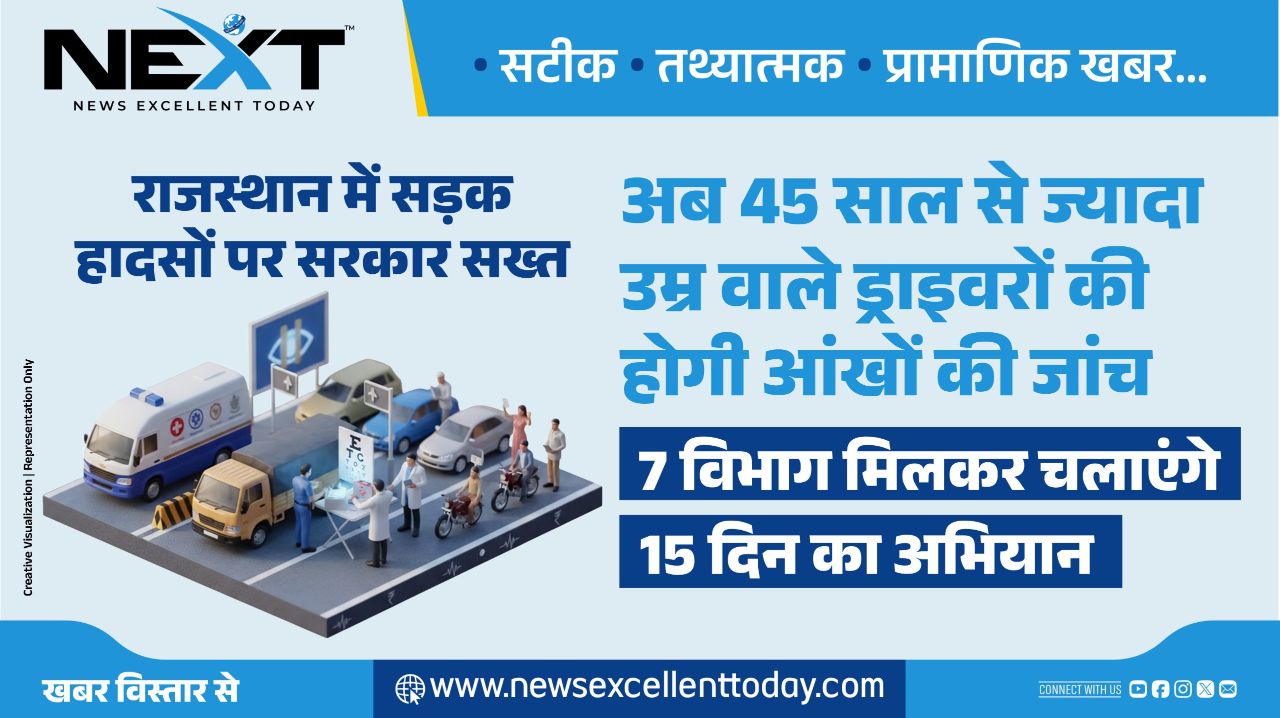 राजस्थान में सड़क हादसों पर सरकार सख्त: अब 45 साल से ज्यादा उम्र वाले ड्राइवरों की होगी आंखों की जांच, 7 विभाग मिलकर चलाएंगे 15 दिन का अभियान
