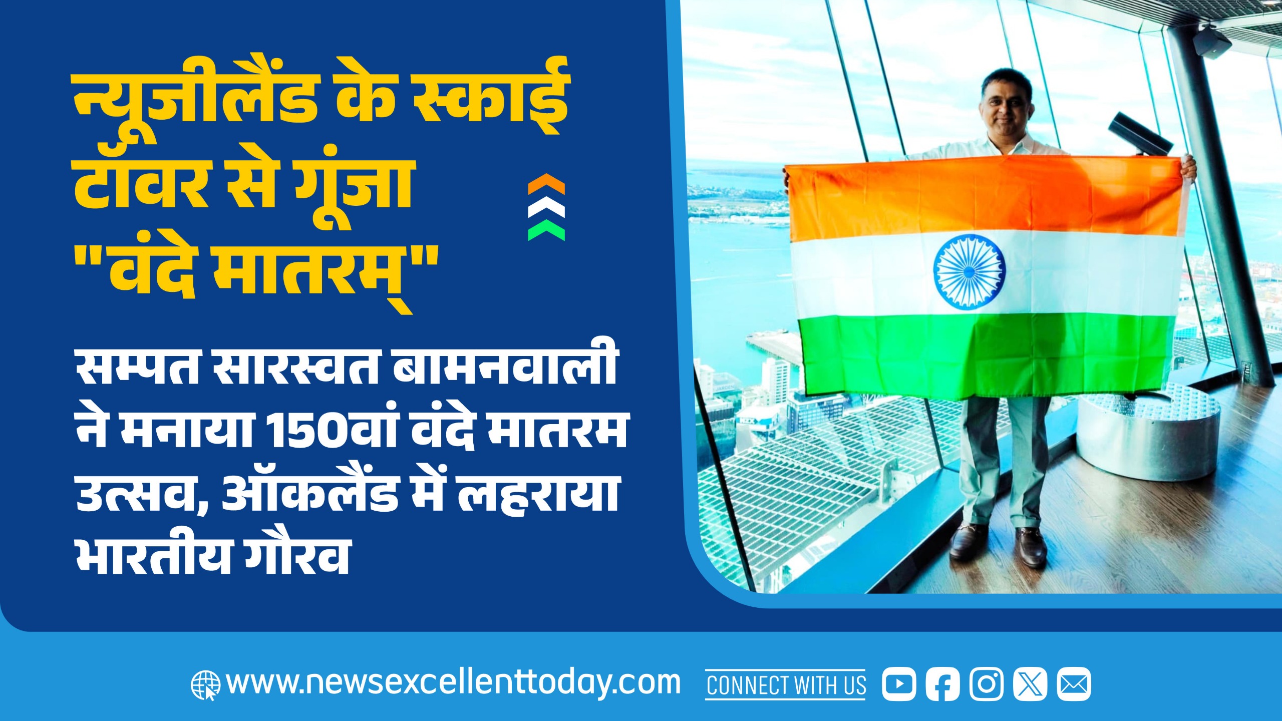 न्यूजीलैंड के स्काई टॉवर से गूंजा “वंदे मातरम्”: सम्पत सारस्वत बामनवाली ने मनाया 150वां वंदे मातरम उत्सव, ऑकलैंड में लहराया भारतीय गौरव
