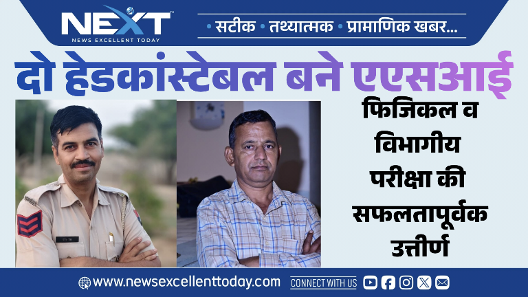 NEXT 29 जनवरी, 2026 श्रीडूंगरगढ़। सेरुणा थाना में कार्यरत हेडकांस्टेबल आवड़दान चारण और फतेहसिंह ने फिजिकल एवं एएसआई पदोन्नति परीक्षा सफलतापूर्वक उत्तीर्ण कर एएसआई ...
