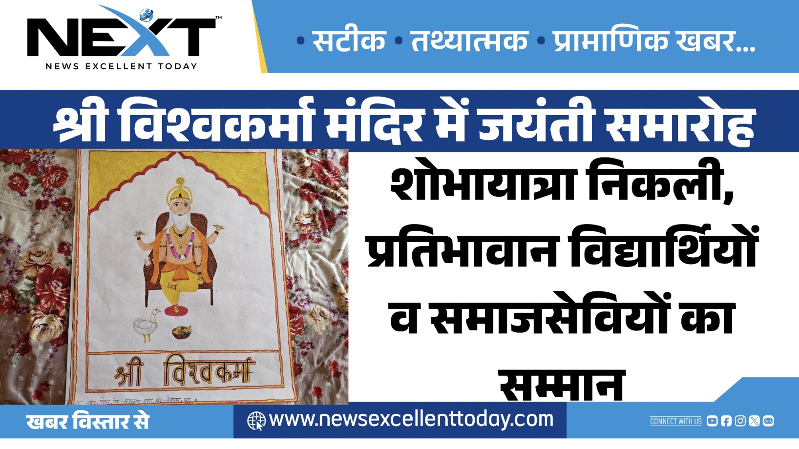 श्रीडूंगरगढ़: श्री विश्वकर्मा मंदिर में जयंती समारोह, शोभायात्रा निकली; प्रतिभावान विद्यार्थियों व समाजसेवियों का सम्मान