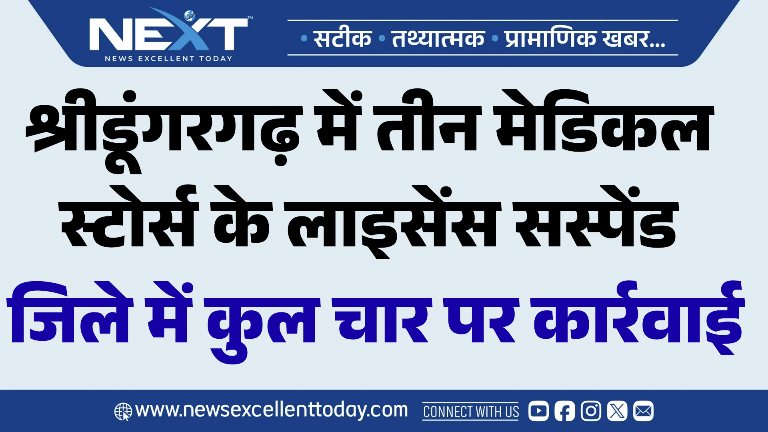 श्रीडूंगरगढ़ में तीन मेडिकल स्टोर्स के लाइसेंस सस्पेंड, जिले में कुल चार पर कार्रवाई