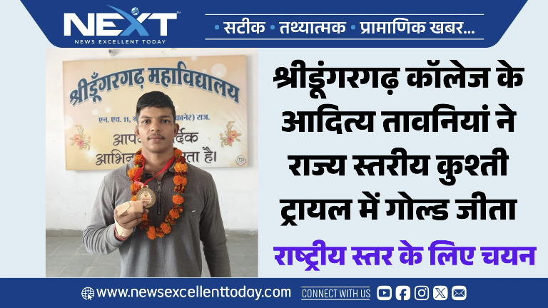 श्रीडूंगरगढ़ कॉलेज के आदित्य तावनियां ने राज्य स्तरीय कुश्ती ट्रायल में गोल्ड जीता, राष्ट्रीय स्तर के लिए चयन