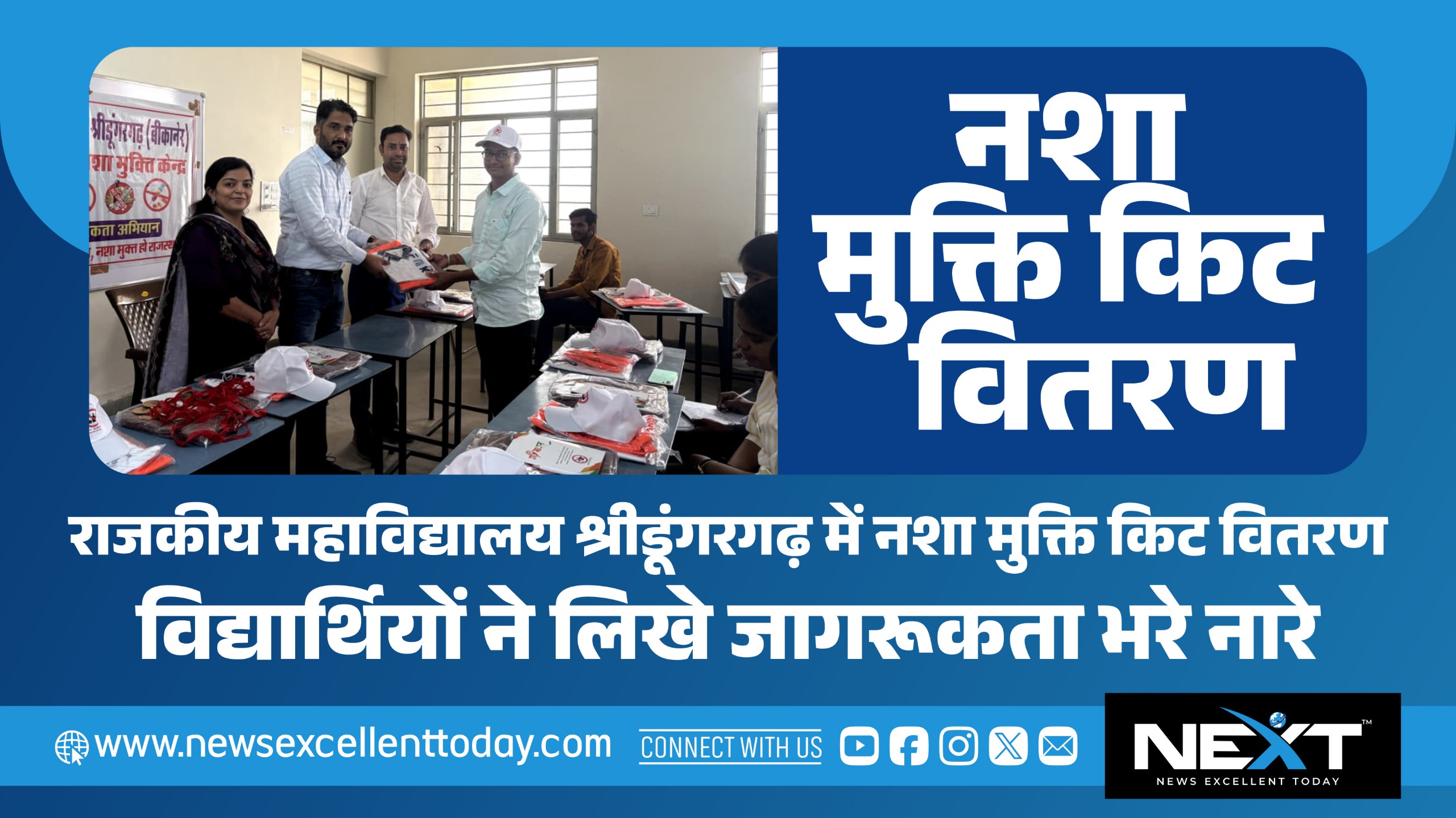 राजकीय महाविद्यालय श्रीडूंगरगढ़ में नशा मुक्ति किट वितरण, विद्यार्थियों ने लिखे जागरूकता भरे नारे