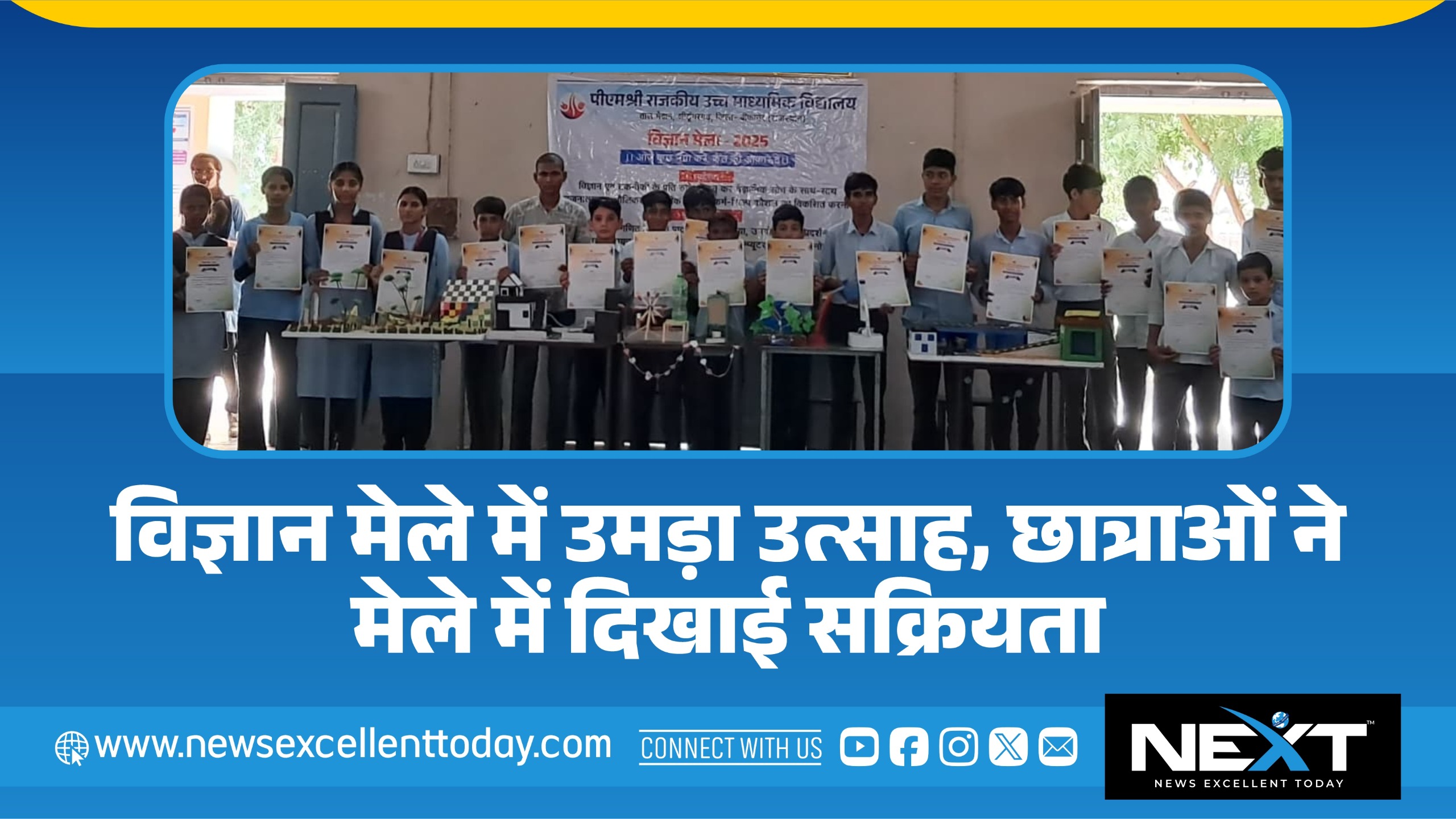NEXT 20 सितम्बर, 2025 श्रीडूंगरगढ़। कस्बे के ताल मैदान स्थित राजकीय उच्च माध्यमिक विद्यालय में शनिवार को विज्ञान मेला लगाया गया। विद्यार्थियों ने इसमें ...
