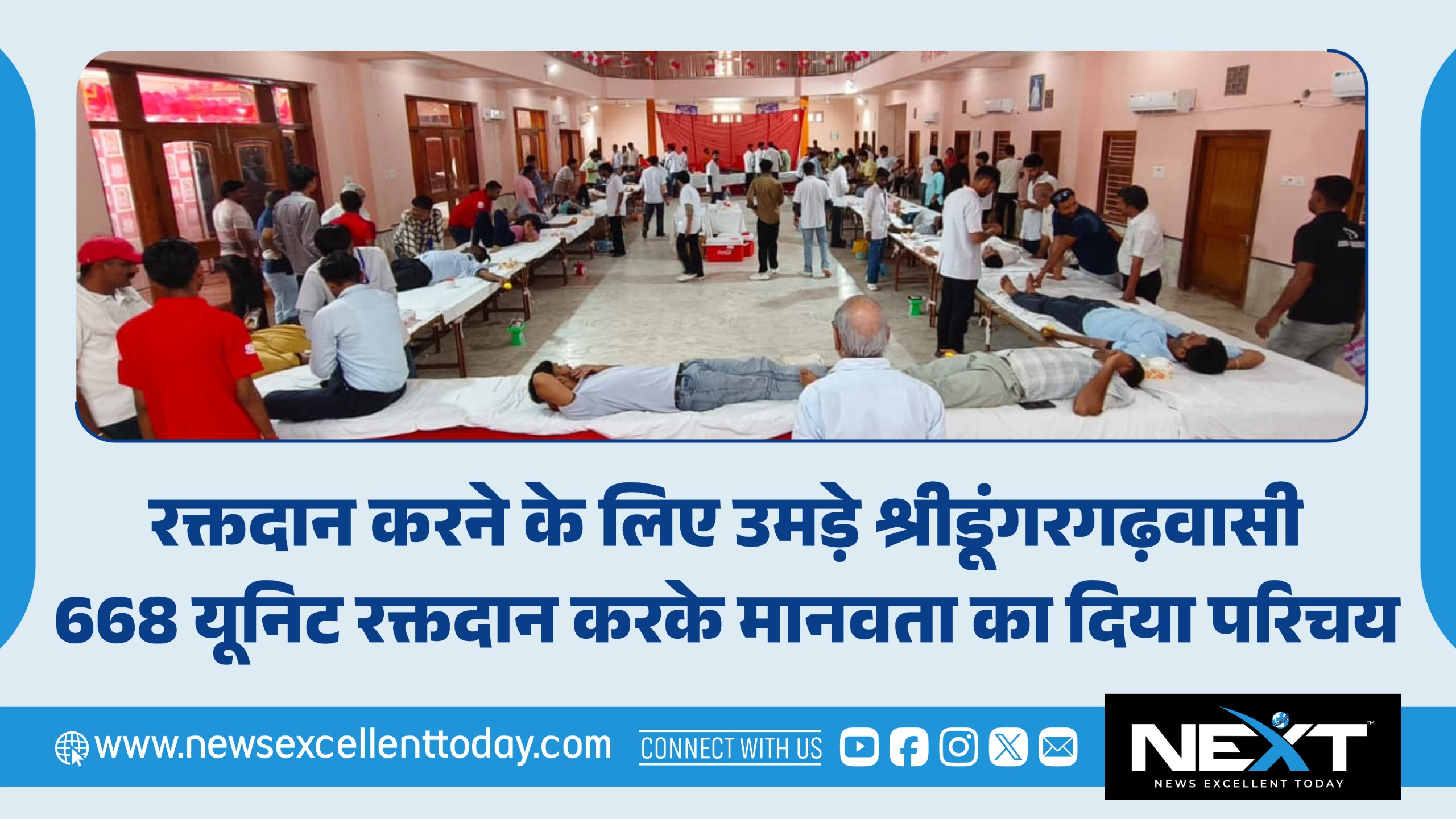 NEXT 17 सितम्बर, 2025 श्रीडूंगरगढ़। तेरापंथ युवक परिषद ने बुधवार को मानव सेवा का नया कीर्तिमान रचते हुए एक दिन में 668 यूनिट रक्तदान ...