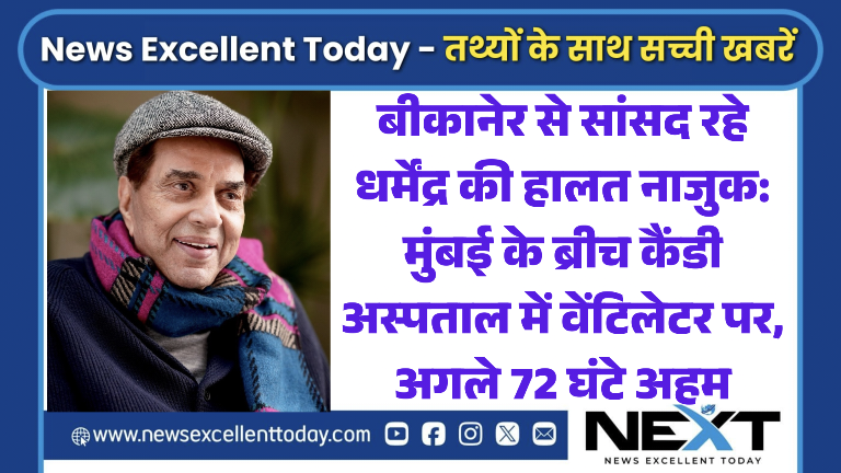 बीकानेर से सांसद रहे धर्मेंद्र की हालत नाजुक: मुंबई के ब्रीच कैंडी अस्पताल में वेंटिलेटर पर, अगले 72 घंटे अहम