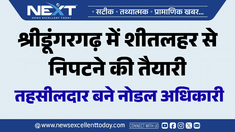 NEXT 8 जनवरी, 2026 श्रीडूंगरगढ़। शीतलहर के बढ़ते प्रकोप को देखते हुए प्रशासन ने उपखण्ड स्तर पर तैयारियां तेज कर दी हैं। आपदा प्रबंधन, ...