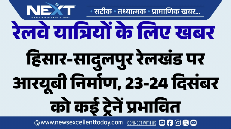 हिसार-सादुलपुर रेलखंड पर आरयूबी निर्माण, 23-24 दिसंबर को कई ट्रेनें प्रभावित