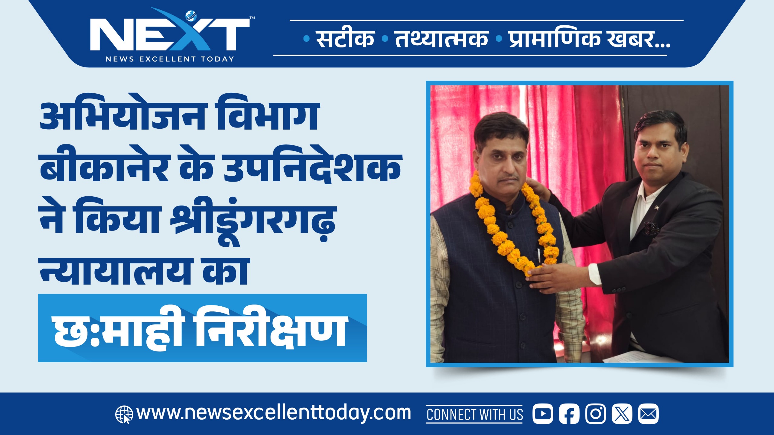 NEXT 12 दिसंबर, 2025 श्रीडूंगरगढ़। अभियोजन विभाग बीकानेर के उपनिदेशक भगवान सिंह राठौड़ शुक्रवार को श्रीडूंगरगढ़ पहुंचे और स्थानीय न्यायालय परिसर में अभियोजन विभाग ...
