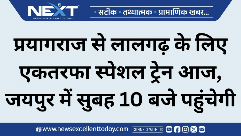 प्रयागराज से लालगढ़ के लिए एकतरफा स्पेशल ट्रेन आज, जयपुर में सुबह 10 बजे पहुंचेगी