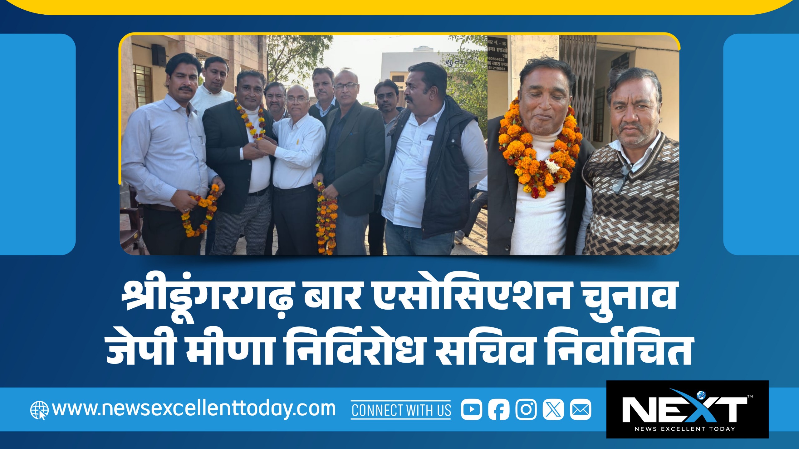 NEXT 9 दिसम्बर, 2025 श्रीडूंगरगढ़। स्थानीय बार एसोसिएशन के चुनाव में सचिव पद पर जयप्रकाश (जेपी) मीणा निर्विरोध निर्वाचित हो गए। नामांकन वापसी के ...