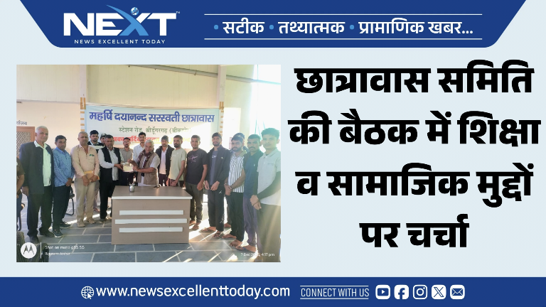 NEXT 7 दिसम्बर, 2025 श्रीडूंगरगढ़। महर्षि दयानंद सरस्वती छात्रावास विकास समिति की बैठक रविवार को छात्रावास परिसर में आयोजित हुई। बैठक की अध्यक्षता एडवोकेट ...