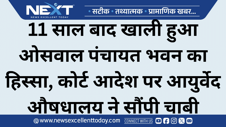11 साल बाद खाली हुआ ओसवाल पंचायत भवन का हिस्सा, कोर्ट आदेश पर आयुर्वेद औषधालय ने सौंपी चाबी