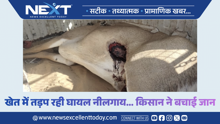 खेत में तड़प रही घायल नीलगाय… किसान ने बचाई जान, वन विभाग को सौंपा