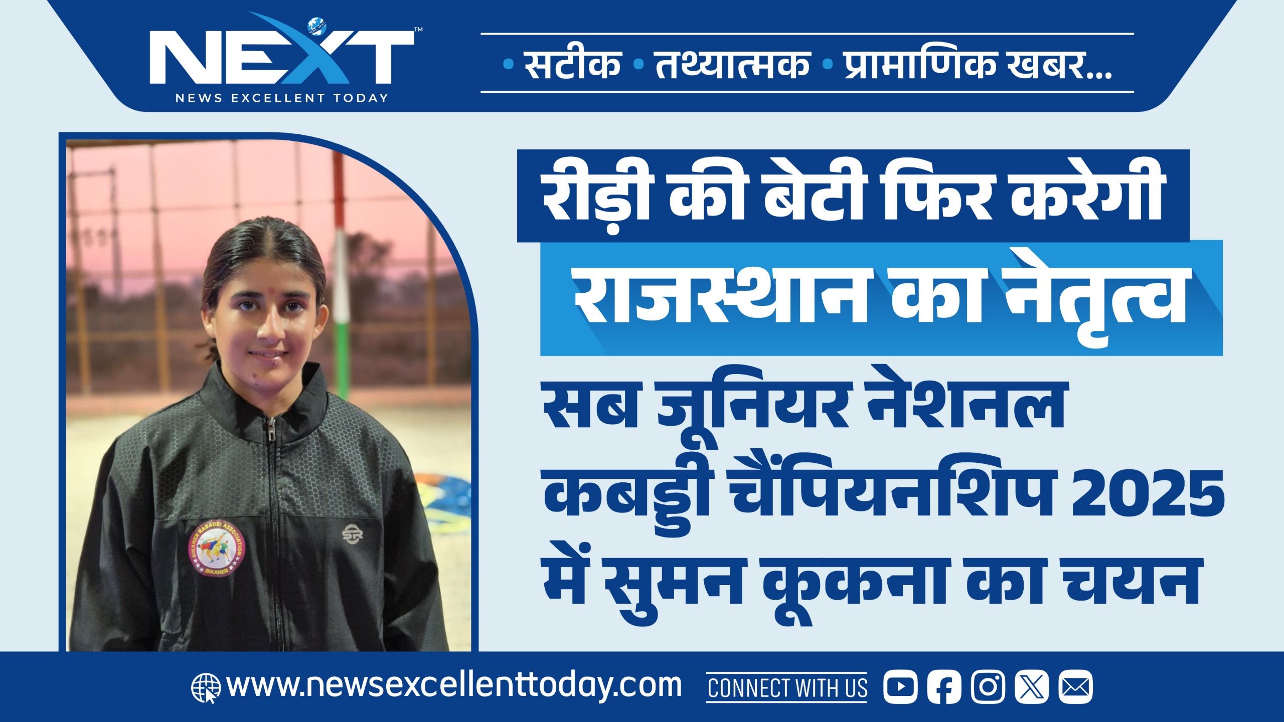 रीड़ी की बेटी फिर करेगी राजस्थान का नेतृत्व: सब जूनियर नेशनल कबड्डी चैंपियनशिप 2025 में सुमन कूकना का चयन