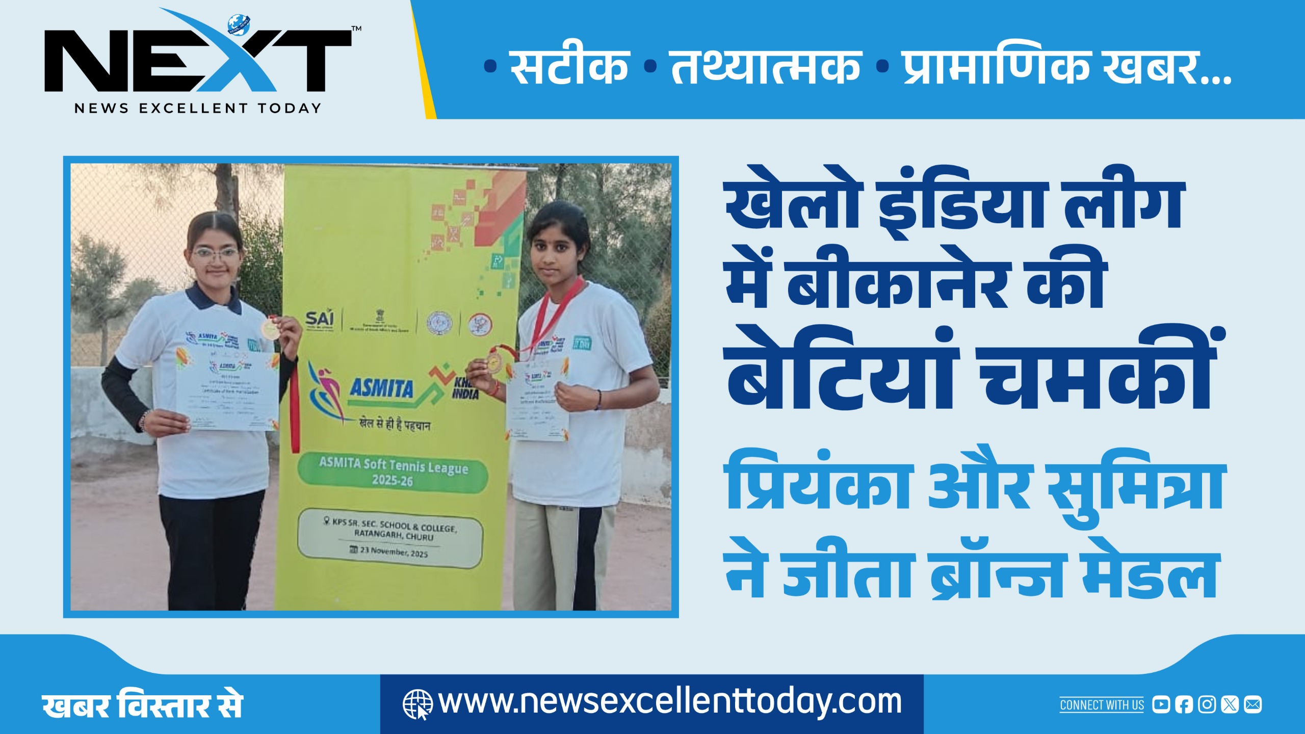 खेलो इंडिया लीग में बीकानेर की बेटियां चमकीं, प्रियंका और सुमित्रा ने जीता ब्रॉन्ज मेडल
