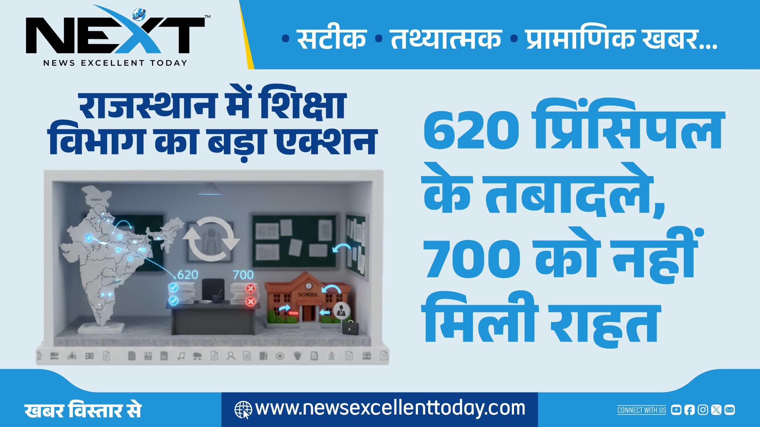राजस्थान में शिक्षा विभाग का बड़ा एक्शन: 620 प्रिंसिपल के तबादले, 700 को नहीं मिली राहत