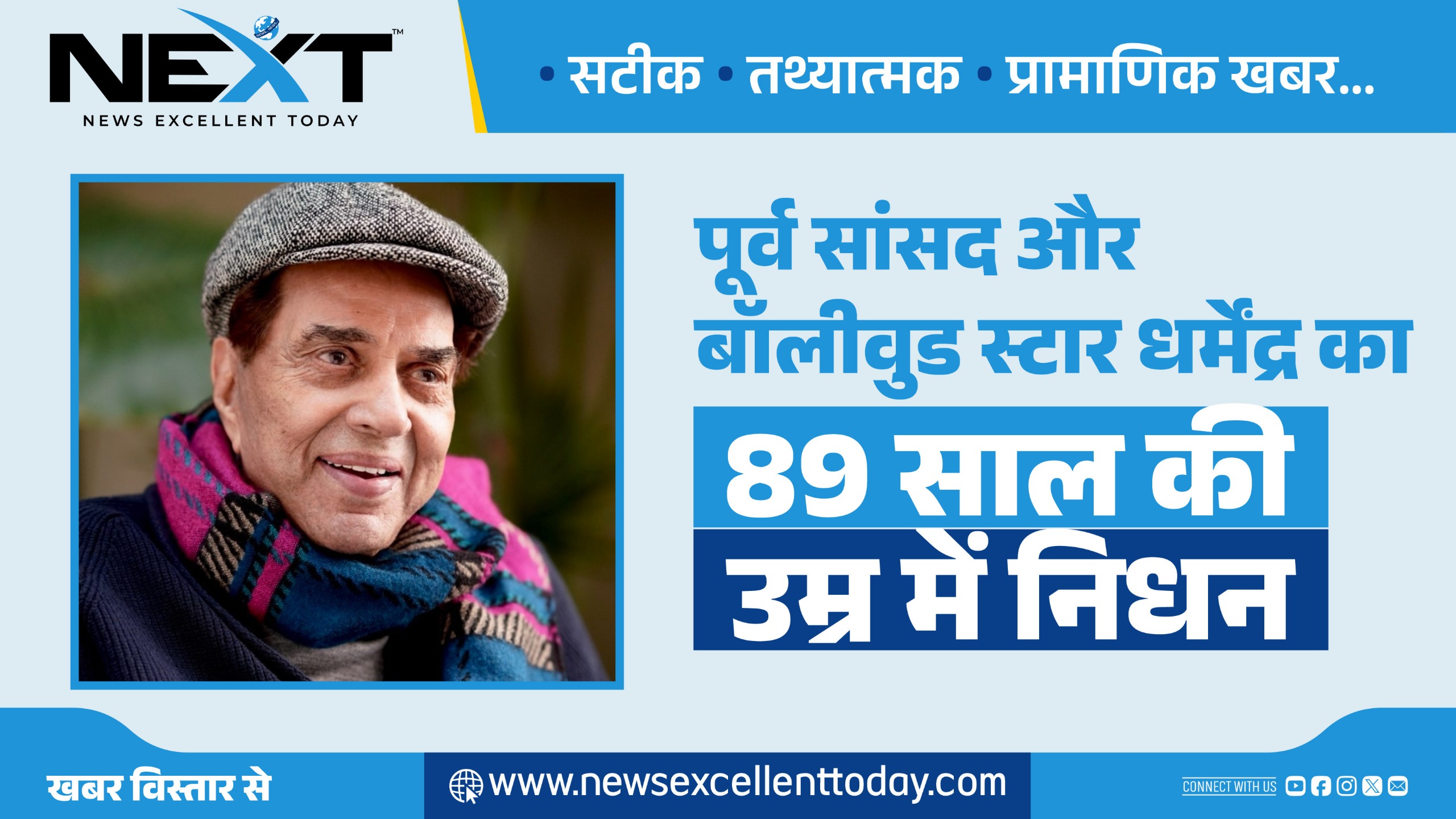 NEXT 24 नवम्बर, 2025 श्रीडूंगरगढ़। बीकानेर से पूर्व सांसद और बॉलीवुड के दिग्गज अभिनेता धर्मेंद्र का सोमवार दोपहर निधन हो गया। 89 साल की ...