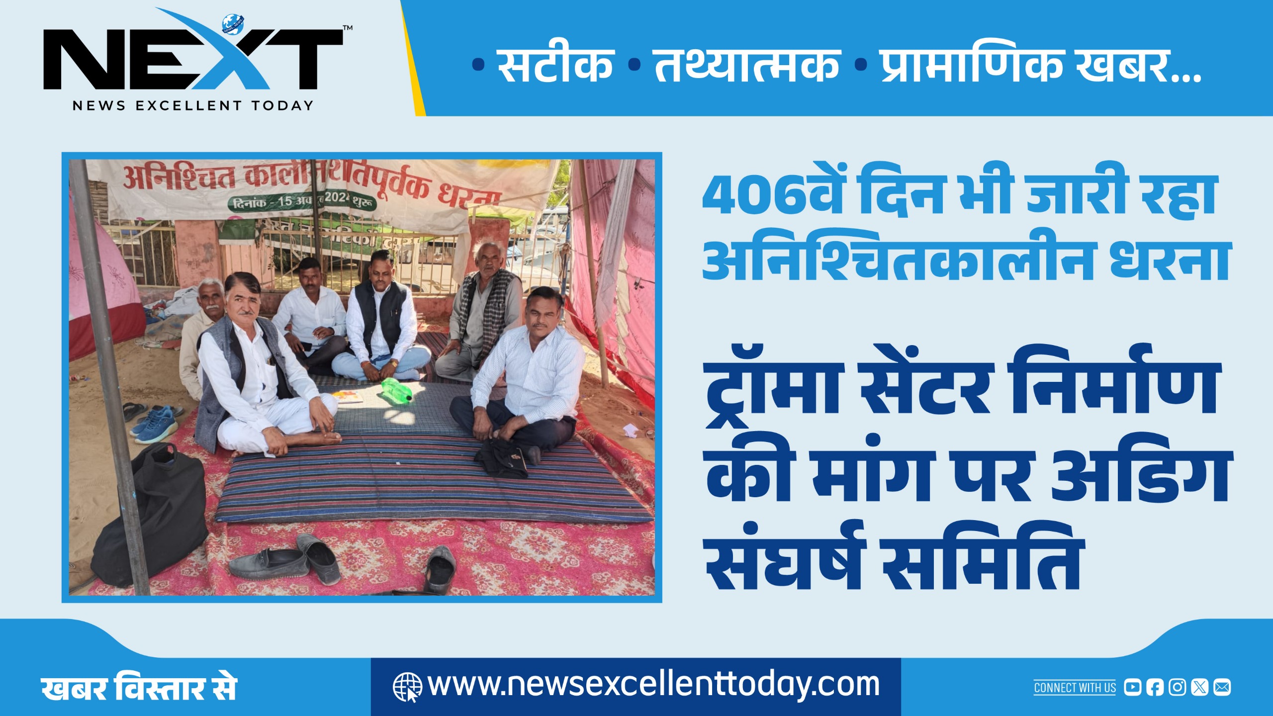 NEXT 24 नवम्बर, 2025 श्रीडूंगरगढ़। ट्रॉमा सेंटर निर्माण संघर्ष समिति का अनिश्चितकालीन धरना सोमवार को 406वें दिन भी जारी रहा। संघर्ष समिति से जुड़े ...