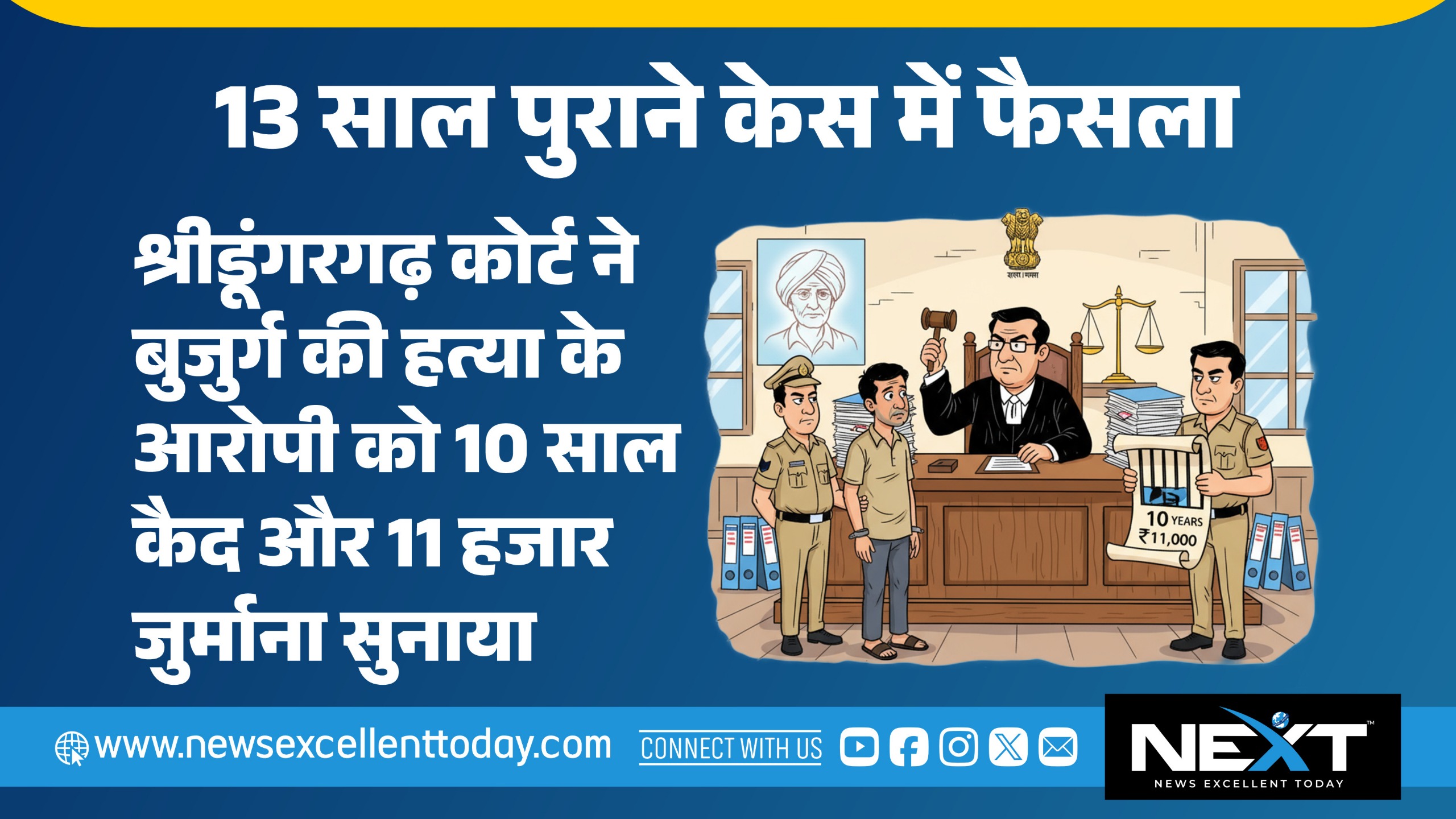 13 साल पुराने केस में फैसला: श्रीडूंगरगढ़ कोर्ट ने बुजुर्ग की हत्या के आरोपी को 10 साल कैद और 11 हजार जुर्माना सुनाया