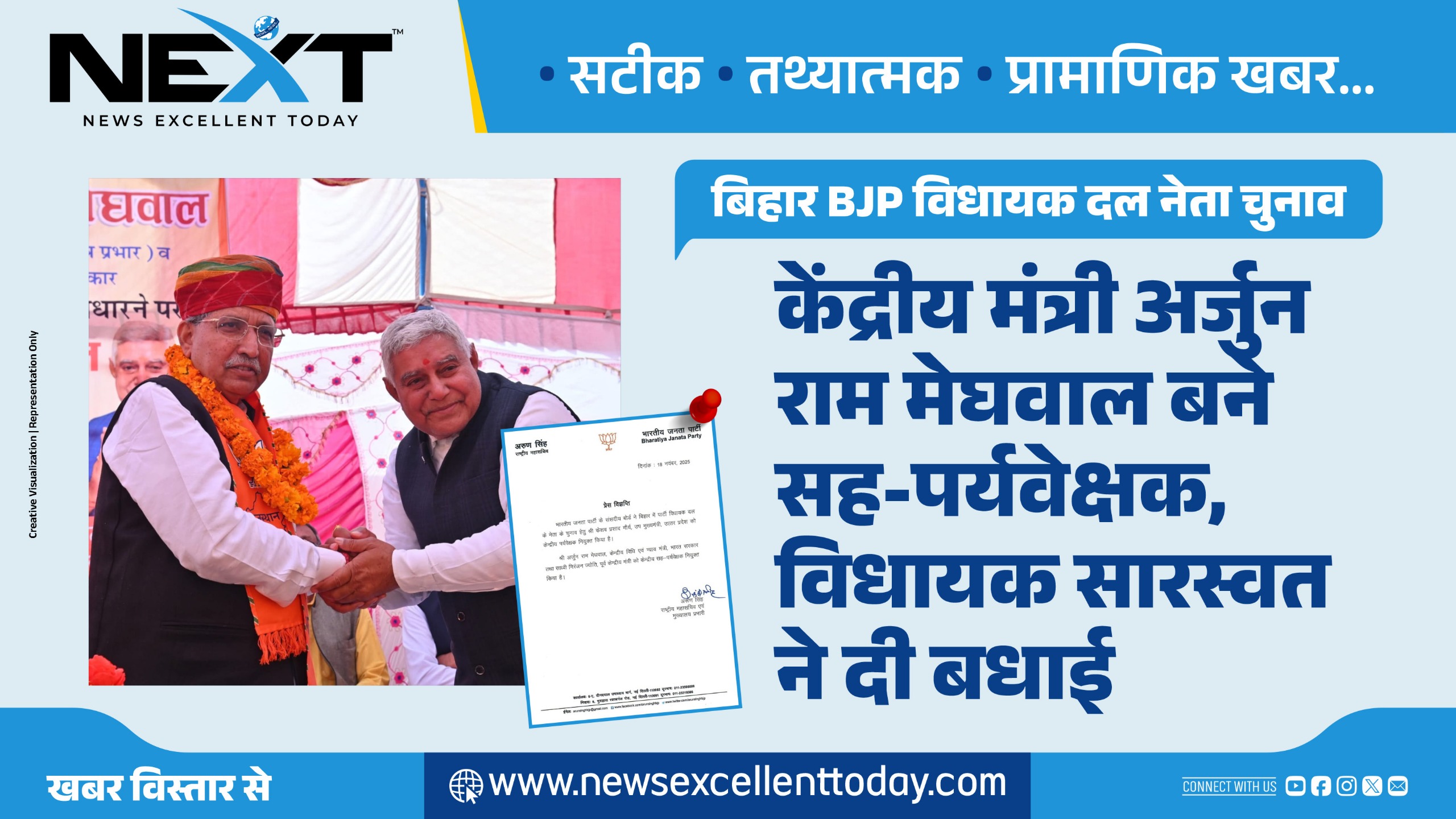 बिहार BJP विधायक दल नेता चुनाव: अर्जुन मेघवाल बने सह-पर्यवेक्षक, विधायक सारस्वत ने दी बधाई