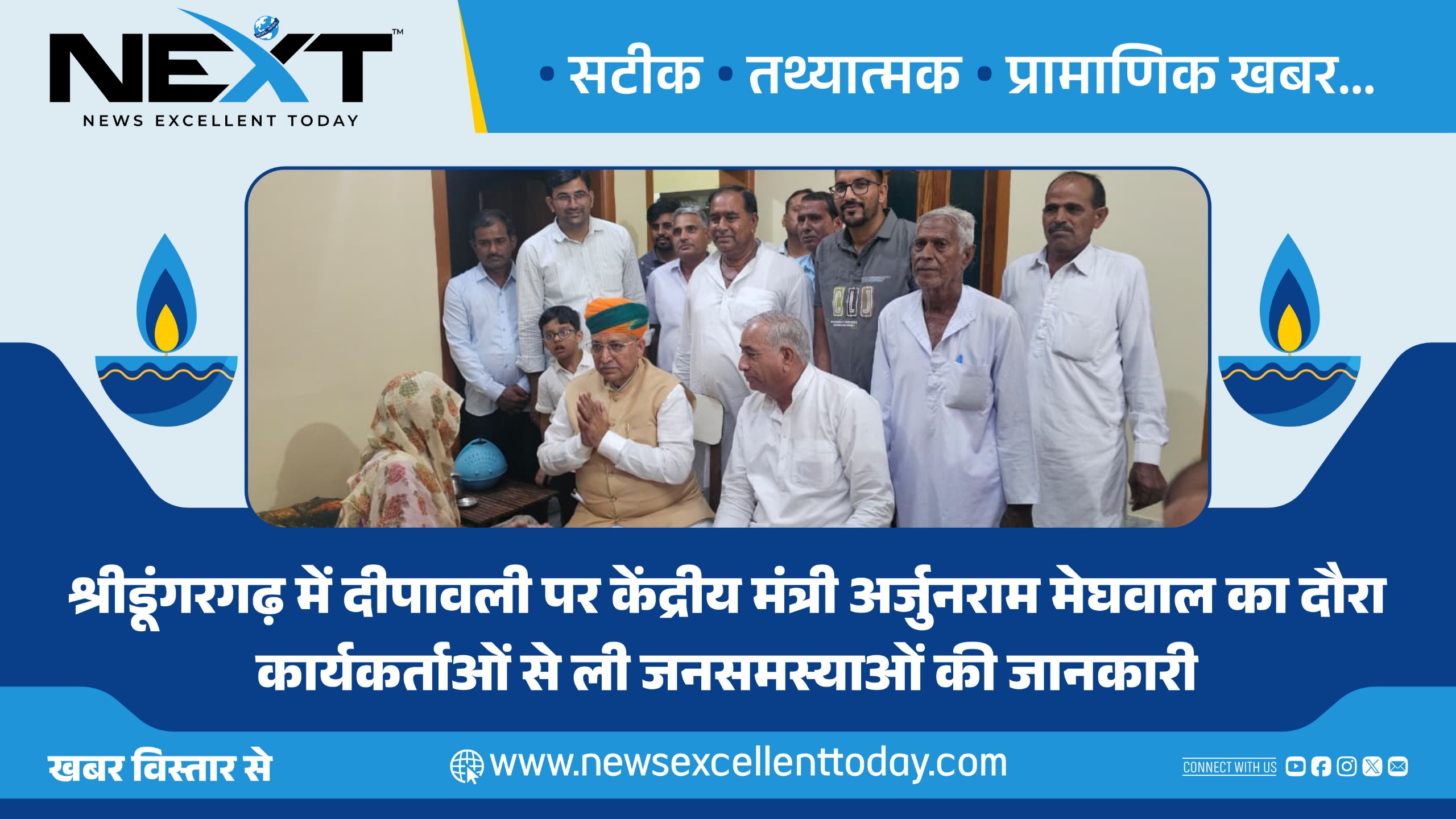 श्रीडूंगरगढ़ में दीपावली पर केंद्रीय मंत्री अर्जुनराम मेघवाल का दौरा, कार्यकर्ताओं से ली जनसमस्याओं की जानकारी