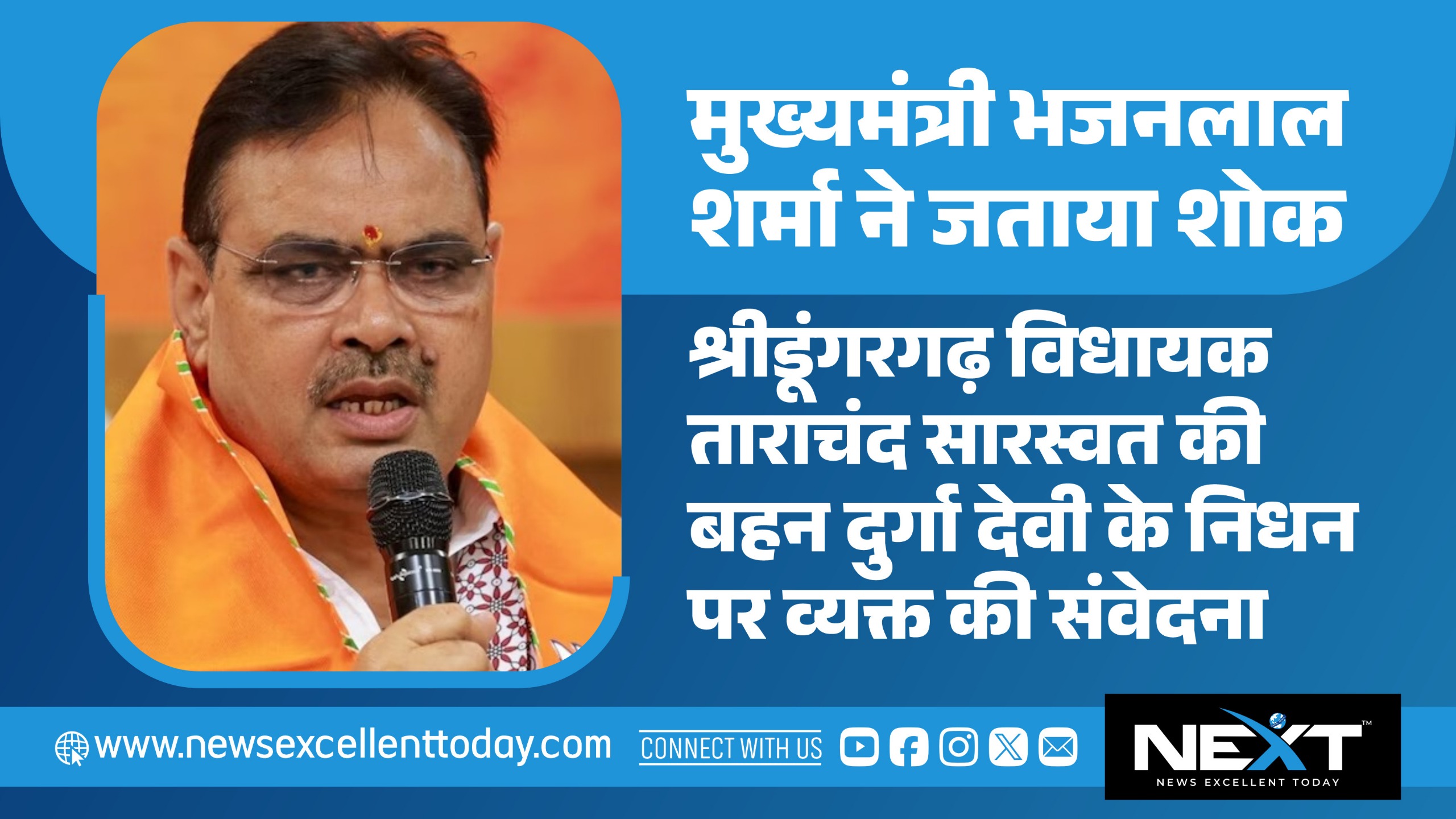 मुख्यमंत्री भजनलाल शर्मा ने जताया शोक: श्रीडूंगरगढ़ विधायक ताराचंद सारस्वत की बहन दुर्गा देवी के निधन पर व्यक्त की संवेदना