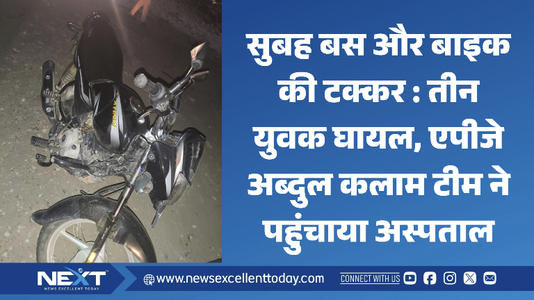 सुबह बस और बाइक की टक्कर : तीन युवक घायल, एपीजे अब्दुल कलाम टीम ने पहुंचाया अस्पताल
