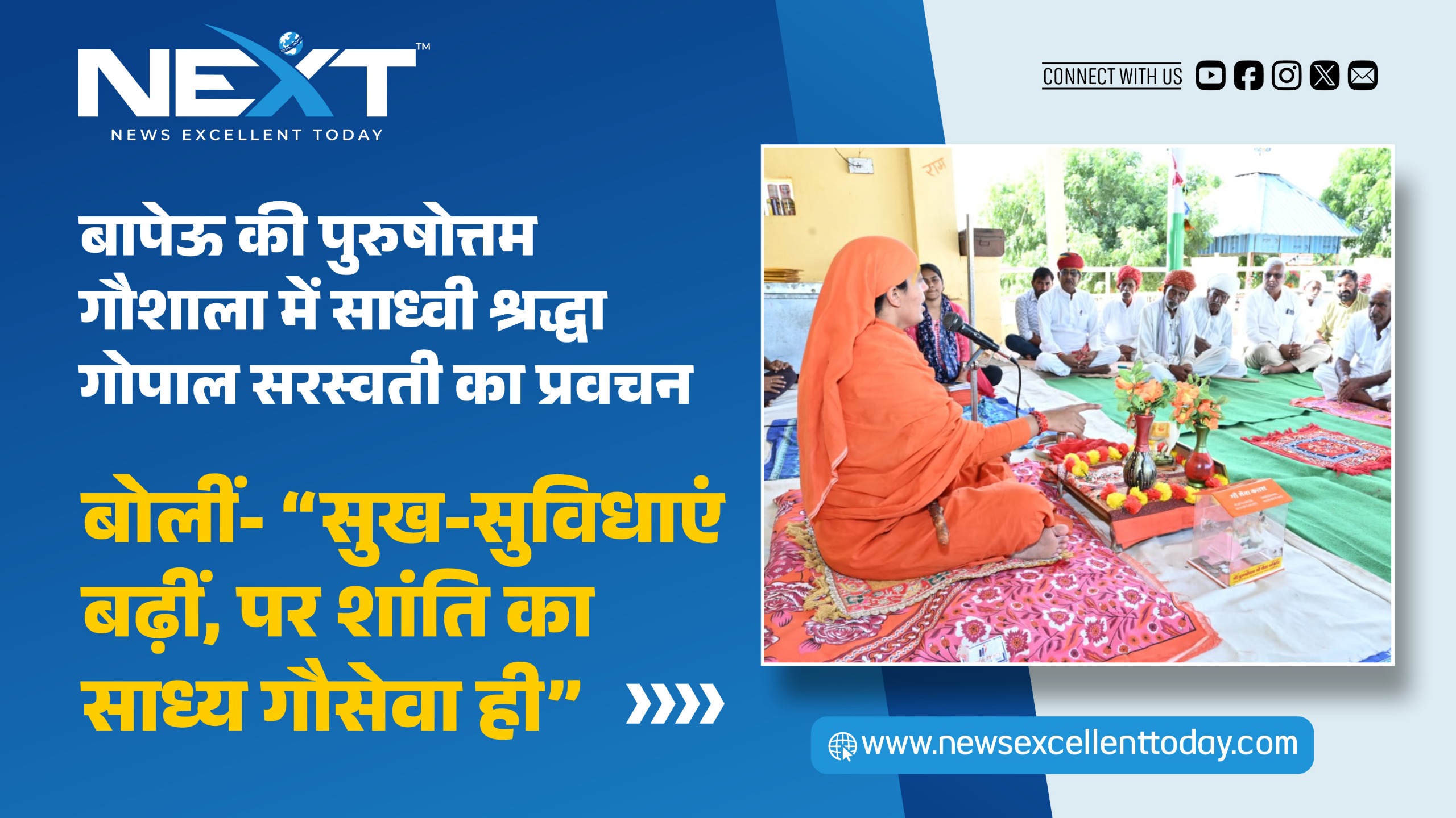 बापेऊ की पुरुषोत्तम गौशाला में साध्वी श्रद्धा गोपाल सरस्वती का प्रवचन: बोलीं- “सुख-सुविधाएं बढ़ीं, पर शांति का साध्य गौसेवा ही”