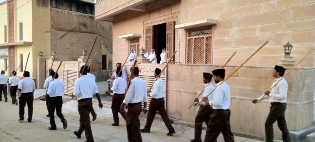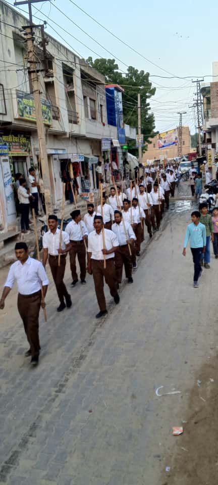 NEXT 13 अक्टूबर, 2025 श्रीडूंगरगढ़। राष्ट्रीय स्वयंसेवक संघ के शताब्दी वर्ष के अवसर पर रविवार को मोमासर खंड द्वारा भव्य पथ संचलन का आयोजन किया गया। संचलन भोमियाजी महाराज मंदिर से प्रारंभ होकर हनुमान धोरा, तेरापंथ भवन मार्ग, पंचायत भवन, सामुदायिक स्वास्थ्य केंद्र व शिवालय बास से होते हुए पुनः भोमियाजी मंदिर परिसर में संपन्न हुआ।