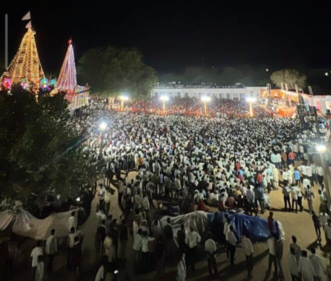 शनिवार रात्रि को धाम पर आयोजित विशाल भक्ति जागरण में सुप्रसिद्ध भजन गायिका अर्चना देवी ने अपनी सुरीली आवाज में “छम-छम बाजे रे घोड़ी थारा घुंघरा” सहित कई लोकप्रिय भजनों की प्रस्तुति दी, जिन पर श्रद्धालु देर रात तक झूमते रहे। भजन गायक रमेश बांगड़वा ने भी वीर बिग्गाजी महाराज की भक्ति कथाओं और भजनों से माहौल को भक्ति रस में रंग दिया। श्रद्धालुओं के जयकारों से पूरा धाम गूंजता रहा।