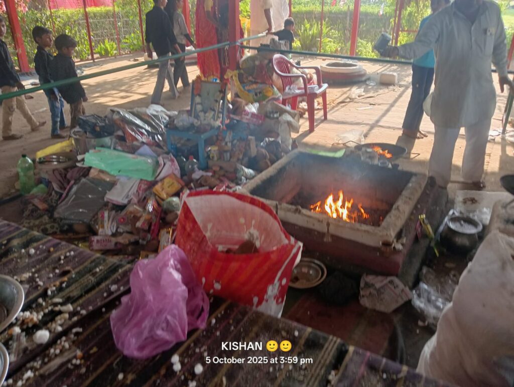 NEXT 5 अक्टूबर, 2025 श्रीडूंगरगढ़। बीकानेर-जयपुर राष्ट्रीय राजमार्ग संख्या 11 पर स्थित गांव सातलेरा बिग्गा से दो किमी दूर रोही क्षेत्र में स्थित वीर बिग्गाजी महाराज की शौर्यपीठ धड़ देवली धाम पर दो दिवसीय मेले के दौरान श्रद्धा और भक्ति का सैलाब उमड़ पड़ा। देशभर से आए हजारों श्रद्धालुओं ने वीर बिग्गाजी महाराज के दर पर माथा टेककर सुख-समृद्धि की कामना की। मंदिर पुजारी सोहननाथ ने धाम पर अखंड ज्योत प्रज्ज्वलित कर क्षेत्र की खुशहाली की प्रार्थना की। श्रद्धालुओं ने मंदिर परिसर में बने हवन कुंड में घी और खोपरा की आहुतियां देकर पर्यावरण शुद्धि की कामना की। पूरा धाम “जय वीर बिग्गाजी महाराज की” के जयकारों से गूंजता रहा।