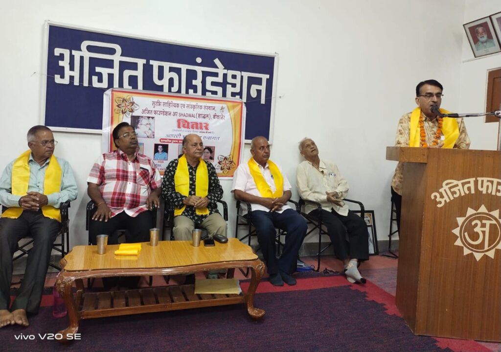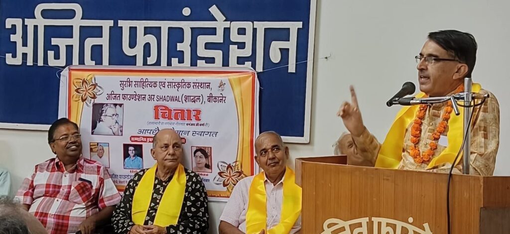 NEXT 21 सितम्बर, 2025 श्रीडूंगरगढ़। सुरभि, अजित फाउंडेशन और शाद्वल के संयुक्त तत्वावधान में रविवार को अजित फाउंडेशन सभागार में जनकवि एवं गीतकार धनंजय वर्मा की स्मृति में ‘चितार’ समारोह हुआ। इस मौके पर साहित्य और संस्कृति में विशेष योगदान देने वाले जानकी नारायण श्रीमाली, रवि पुरोहित, राजेन्द्र स्वर्णकार और मनीषा आर्य सोनी को सम्मानित किया गया।