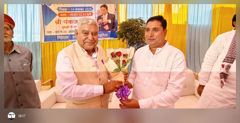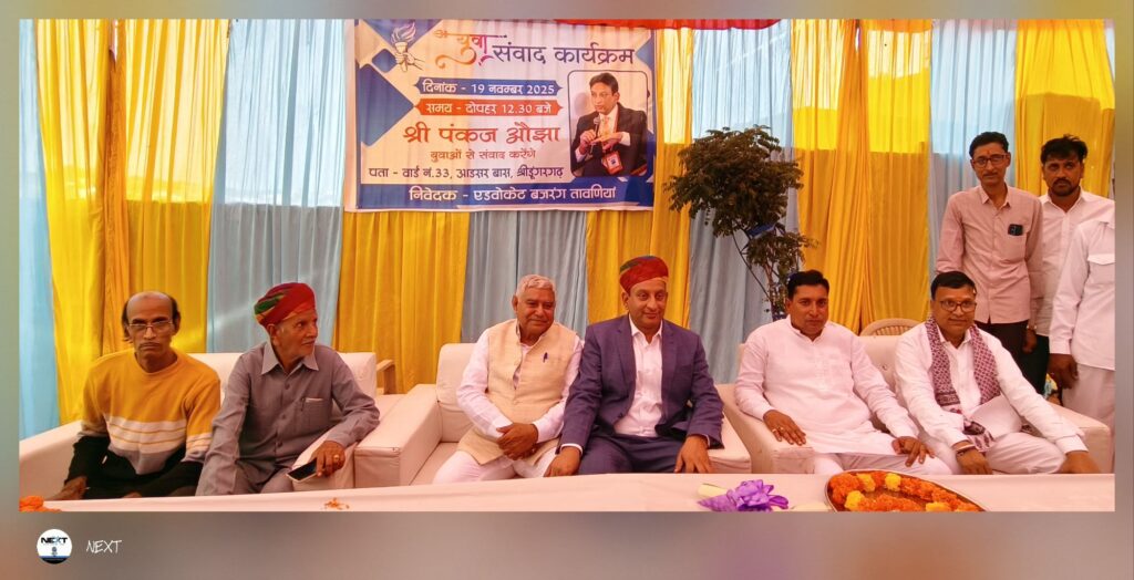 NEXT 19 नवम्बर, 2025 श्रीडूंगरगढ़। एडवोकेट बजरंग तावनिया द्वारा आयोजित युवा संवाद कार्यक्रम में बुधवार को युवाओं का भारी उत्साह देखने को मिला। कार्यक्रम के मुख्य वक्ता विश्व सार्थी ट्रस्ट के संस्थापक और ड्यूश बैंक अमेरिका के डायरेक्टर पंकज ओझा रहे, जिन्होंने युवाओं से आत्मविश्वास, संस्कृति और विकास की दिशा में गंभीरता से सोचने का आह्वान किया।