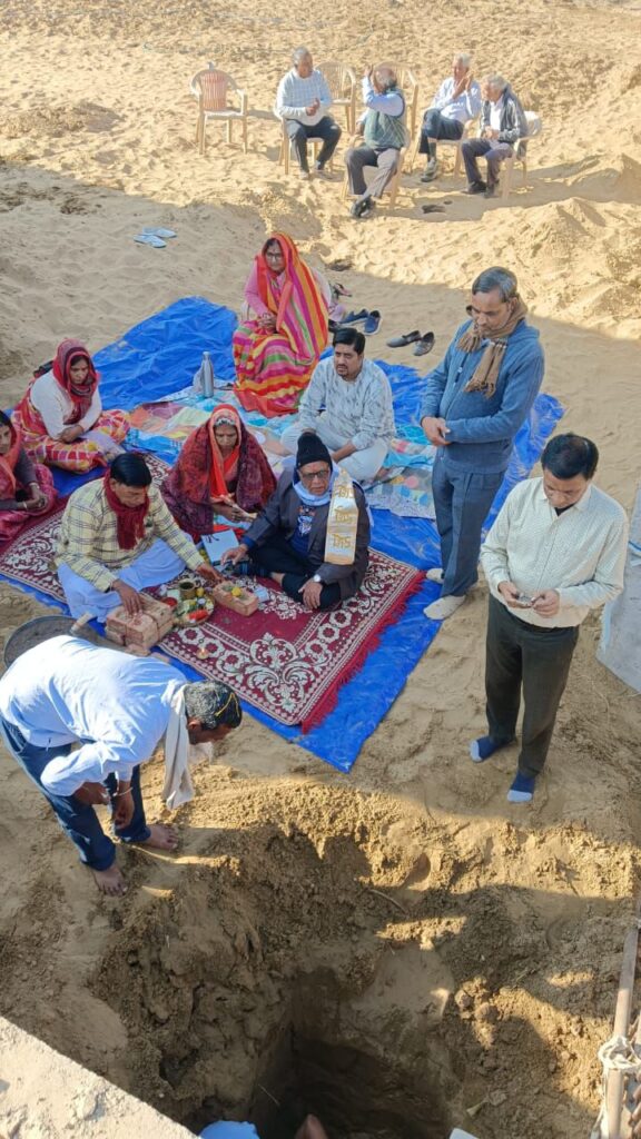 शिलान्यास पंडित श्रवणकुमार छंगाणी द्वारा वैदिक मंत्रोच्चार के साथ सम्पन्न हुआ। इस दौरान कोषाध्यक्ष नथमल सोनी ने निर्माण से संबंधित विस्तृत जानकारी दी।