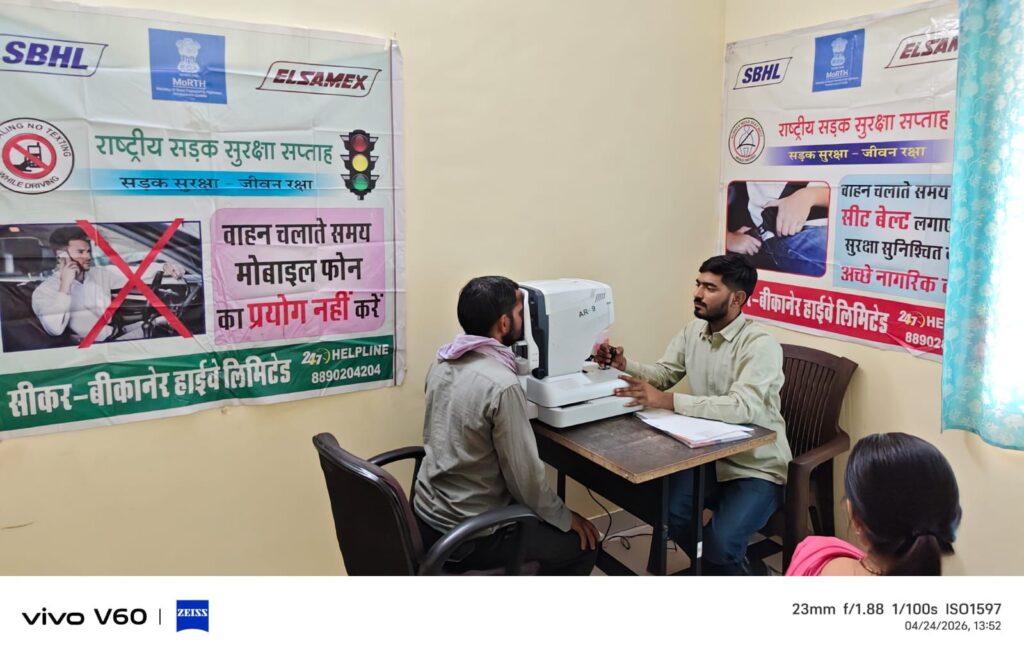 NEXT 24 अप्रैल, 2026 श्रीडूंगरगढ़। राजस्थान सरकार के निर्देशानुसार राष्ट्रीय राजमार्ग-11 पर सड़क दुर्घटनाओं की रोकथाम के उद्देश्य से लखासर टोल प्लाजा पर शुक्रवार को वाहन चालकों के लिए नि:शुल्क नेत्र जांच शिविर का आयोजन किया गया। शिविर के दौरान 56 वाहन चालकों की आंखों की जांच की गई। इनमें जिन चालकों को आवश्यकता पाई गई, उन्हें मौके पर ही नि:शुल्क चश्मे भी वितरित किए गए।