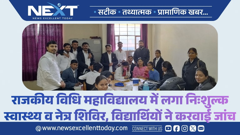 NEXT 1 दिसम्बर, 2025 श्रीडूंगरगढ़। राजकीय विधि स्नातकोत्तर महाविद्यालय में सोमवार को पुष्पलक्ष्मी क्लिनिक की ओर से निःशुल्क स्वास्थ्य एवं नेत्र जांच शिविर लगाया गया। डॉ. पुष्पा शर्मा के नेतृत्व में मेडिकल टीम ने संकाय सदस्यों और विद्यार्थियों की स्वास्थ्य जांच की।
