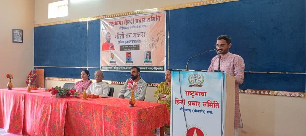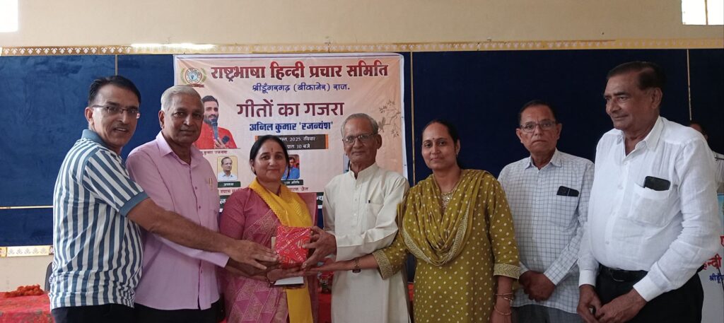 NEXT 31 अगस्त, 2025 श्रीडूंगरगढ़। संस्कृति भवन में रविवार को राष्ट्रभाषा हिंदी प्रचार समिति की ओर से गीतों का गजरा सजाया गया। कार्यक्रम में कवियों ने काव्य रसधारा बहाई और श्रोताओं को देर तक बांधे रखा।