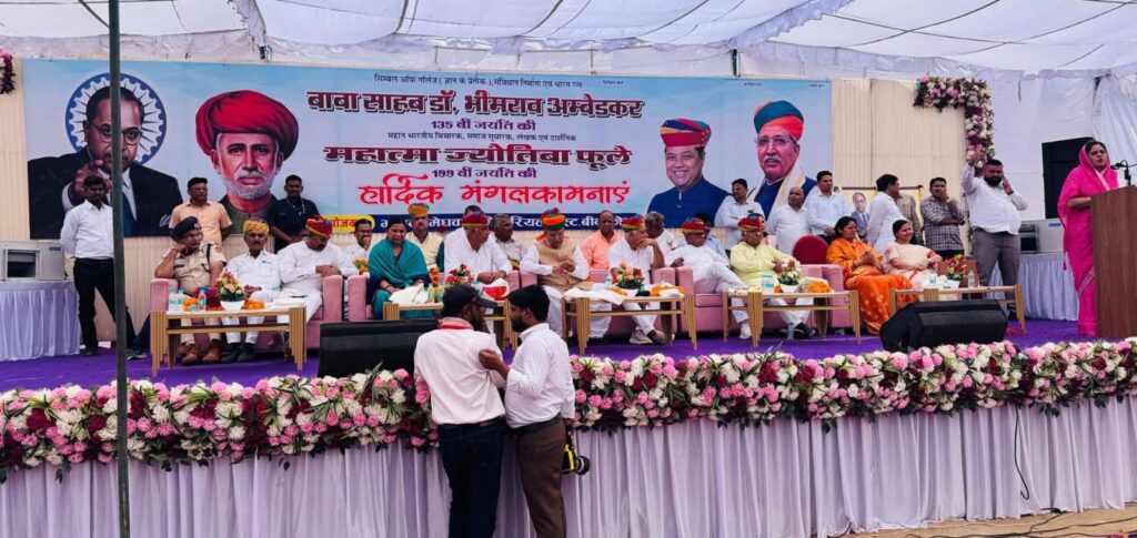 NEXT 13 अप्रैल, 2026 श्रीडूंगरगढ़। डॉ. भीमराव अंबेडकर की 135वीं जयंती और महात्मा ज्योतिबा फुले की 199वीं जयंती के अवसर पर सोमवार सुबह बीकानेर के पॉलिटेक्निक कॉलेज में भव्य समारोह आयोजित किया गया। कार्यक्रम का आयोजन भावना मेघवाल मेमोरियल ट्रस्ट, बीकानेर द्वारा किया गया।