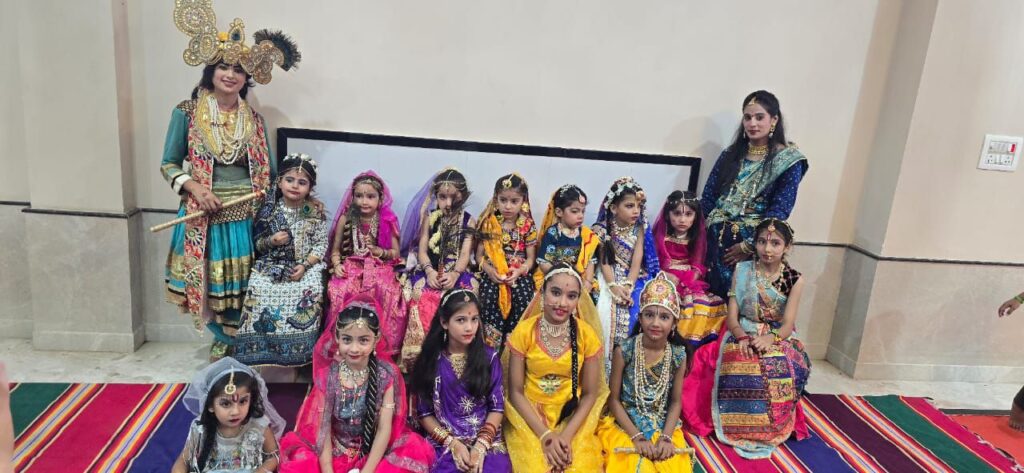 सांस्कृतिक कार्यक्रम में राधा-कृष्ण की जोड़ी ने सबका मन मोह लिया। भजन गाते हुए महिलाएं झूम उठीं और श्रद्धालु देर तक भाव-विभोर होकर बैठे रहे। कार्यक्रम में बड़ी संख्या में श्रद्धालु महिलाएं और बच्चे मौजूद रहे।