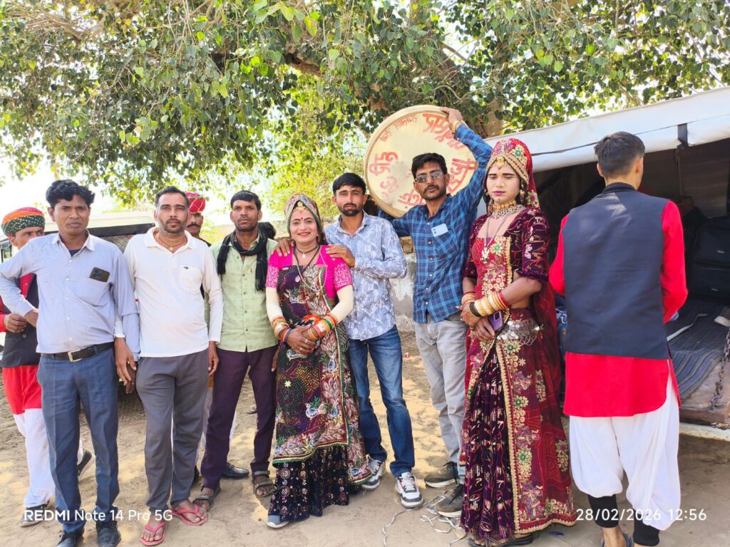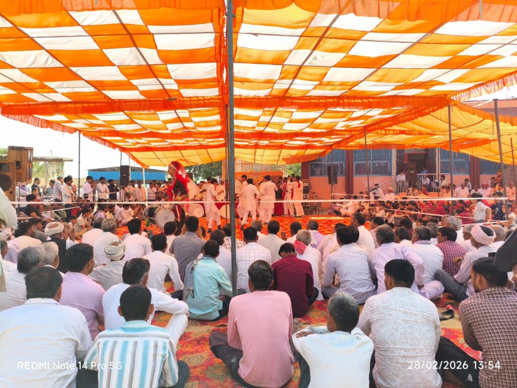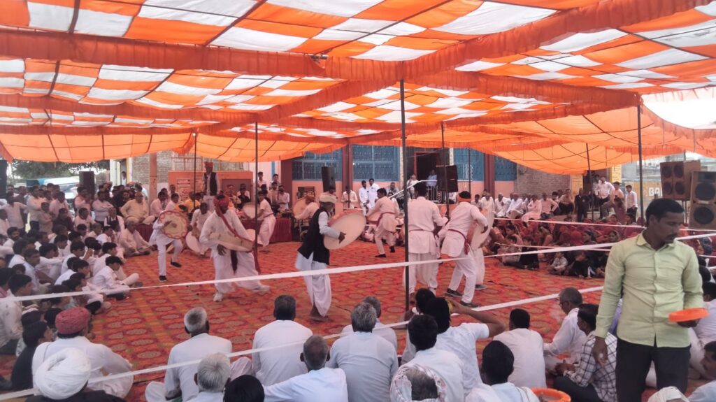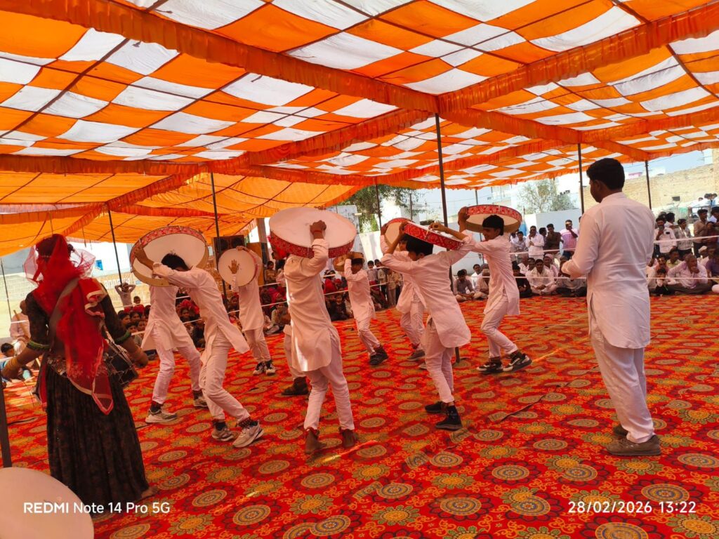 पैरों में घुंघरुओं की झंकार, माथे पर केसरिया साफा, पारंपरिक राजस्थानी वेशभूषा में सजे युवा, बुजुर्ग और महिलाओं के वेश में महरी बने युवक पूरा माहौल रंग, राग और रस से सराबोर नजर आया। हारमोनियम की मधुर ध्वनि और बांसुरी की सुरीली तान पर रसियों ने जमकर नृत्य किया।