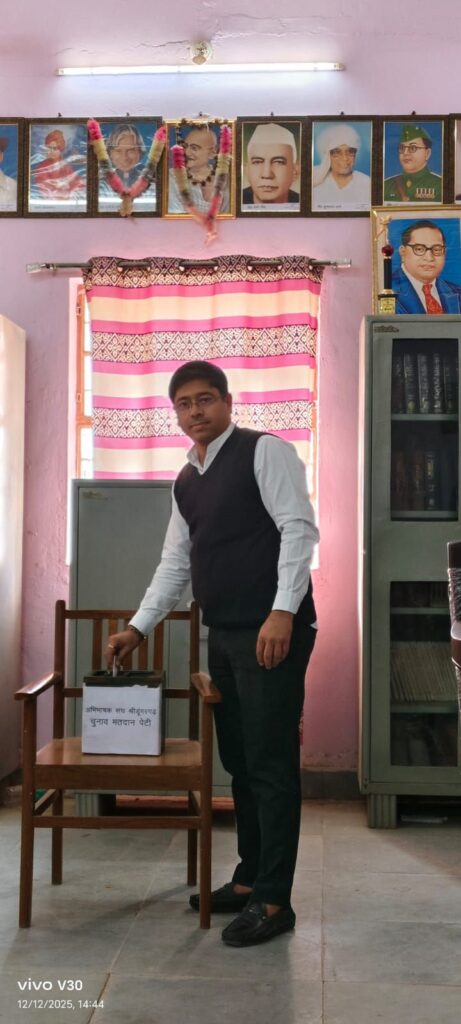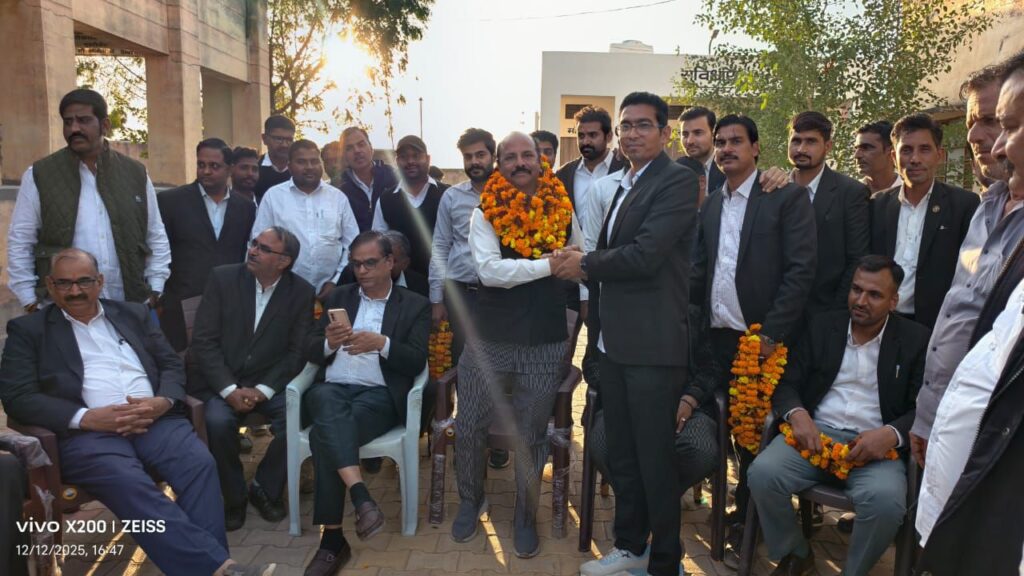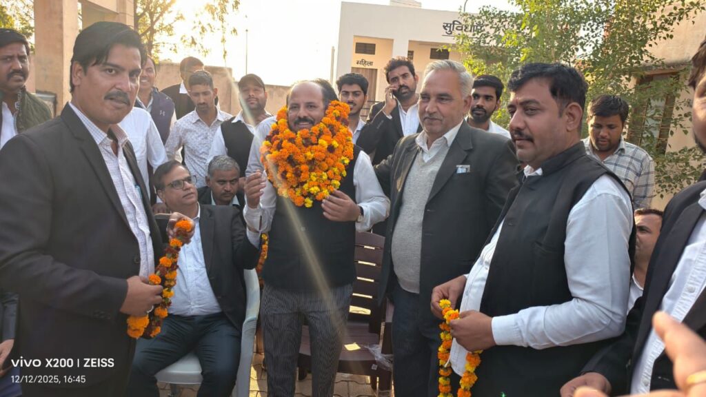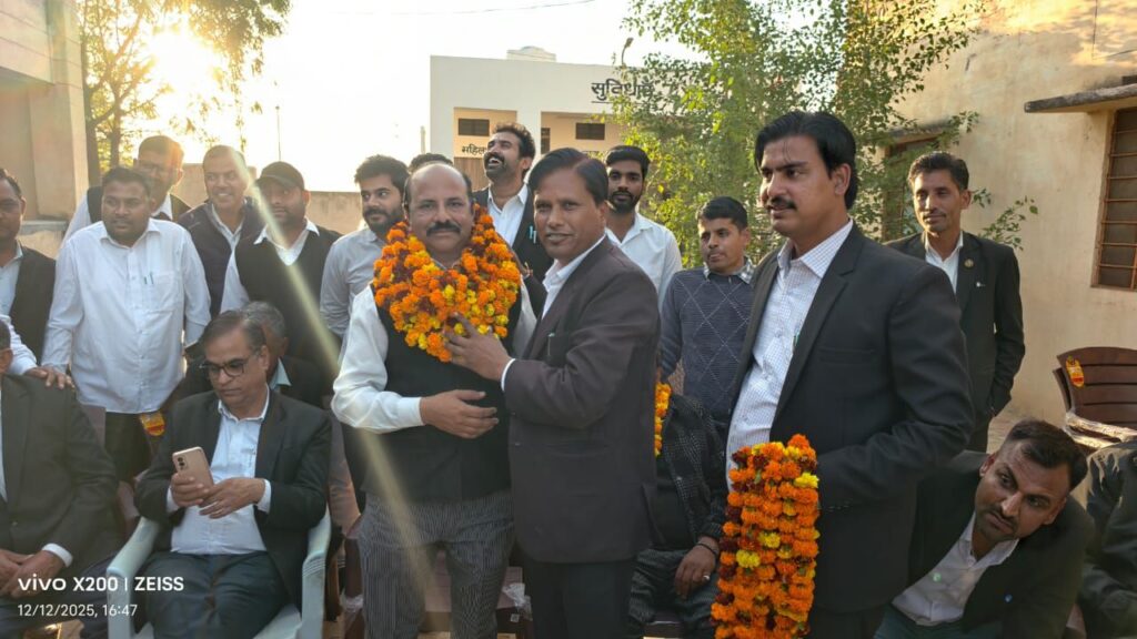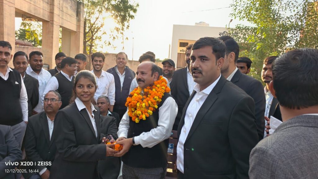 NEXT 12 दिसम्बर, 2025 श्रीडूंगरगढ़। श्रीडूंगरगढ़ बार संघ में अध्यक्ष पद के लिए एडवोकेट ललित मारू 47 वोट से विजयी हुए। कुल 109 वोट में से ललित मारू को 78 मत और गणेशाराम मेघवाल को 31 वोट मिले। जीतते ही साथी अधिवक्ताओं ने माला पहनाकर नव निर्वाचित अध्यक्ष ललित मारू को बधाई दी और माला पहनाई।