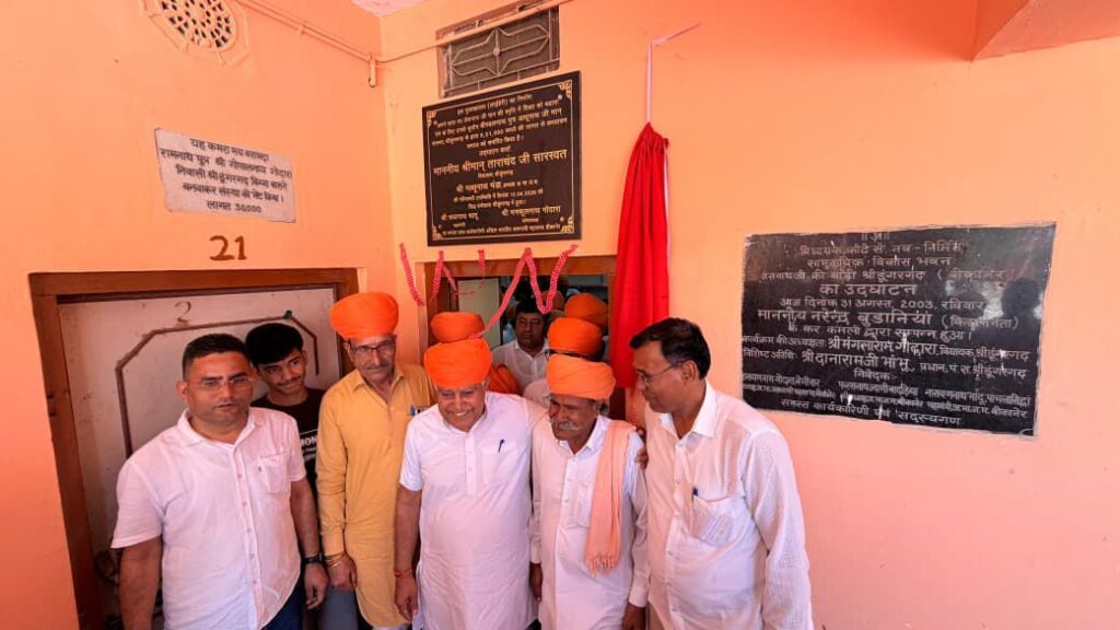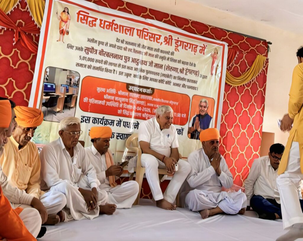NEXT 13 अप्रैल, 2026 श्रीडूंगरगढ़। कस्बे के सिद्ध धर्मशाला परिसर में स्व. जैसनाथ मान की स्मृति में निर्मित लाइब्रेरी का उद्घाटन विधायक ताराचंद सारस्वत ने किया। लाइब्रेरी का निर्माण उनके सुपौत्र बीरबलनाथ (पुत्र आदुनाथ मान) एवं भागुनाथ सिद्ध, सेरुणा के सहयोग से किया गया है।